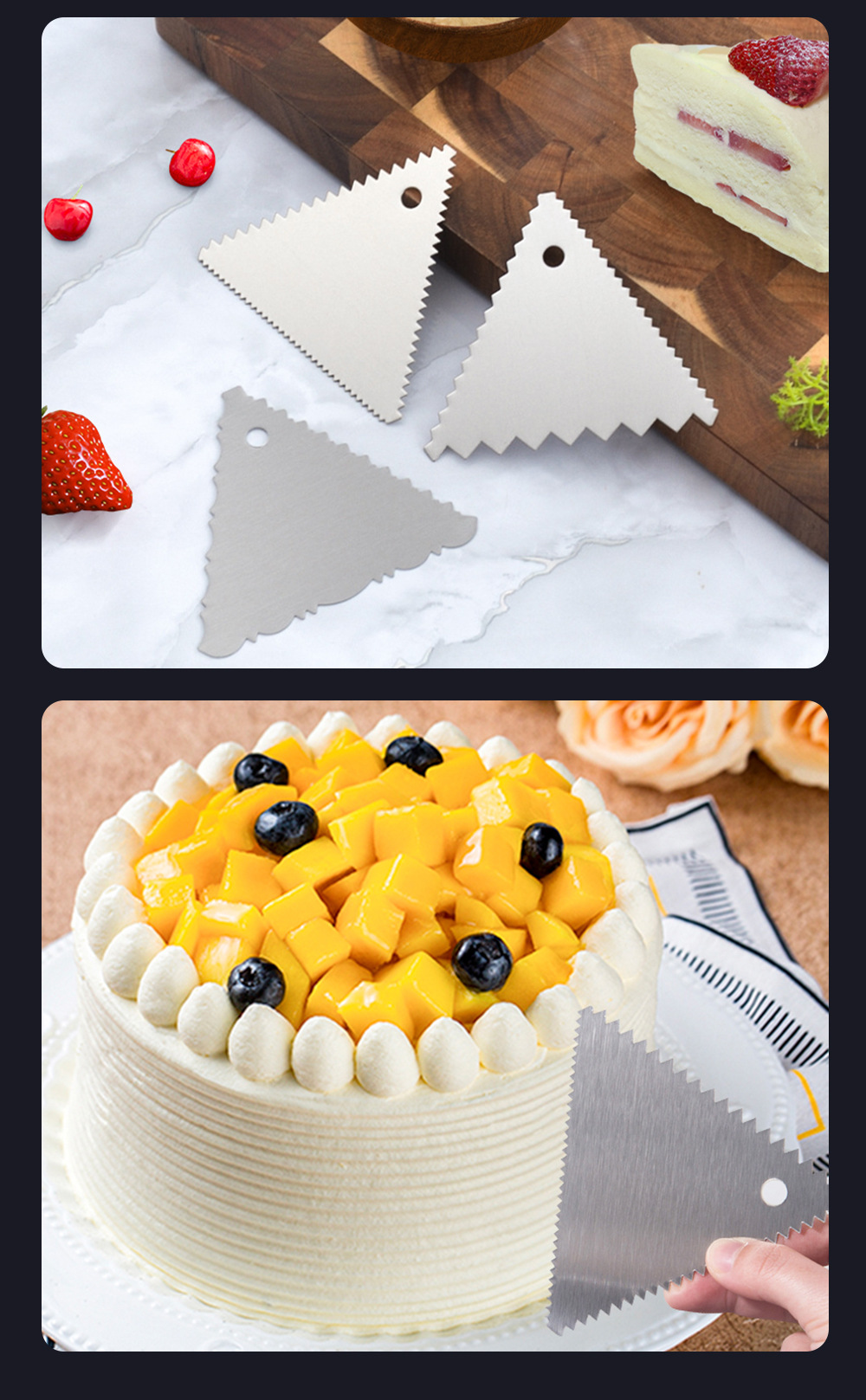베이킹 도구 케이크 스크레이퍼 스테인레스 스틸 직사각형 삼각형 반원형 주걱 DIY 크림 모양 스크레이퍼