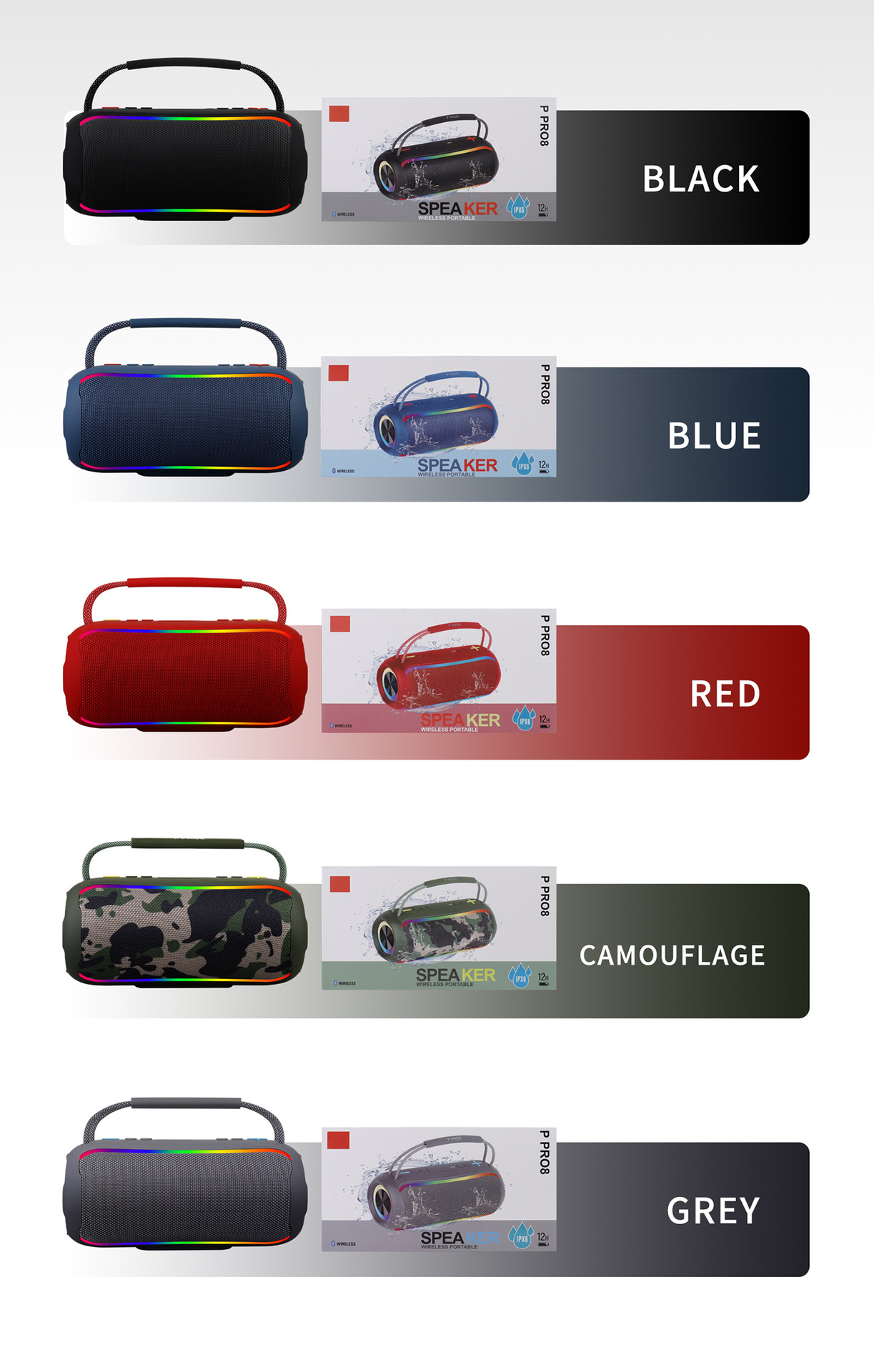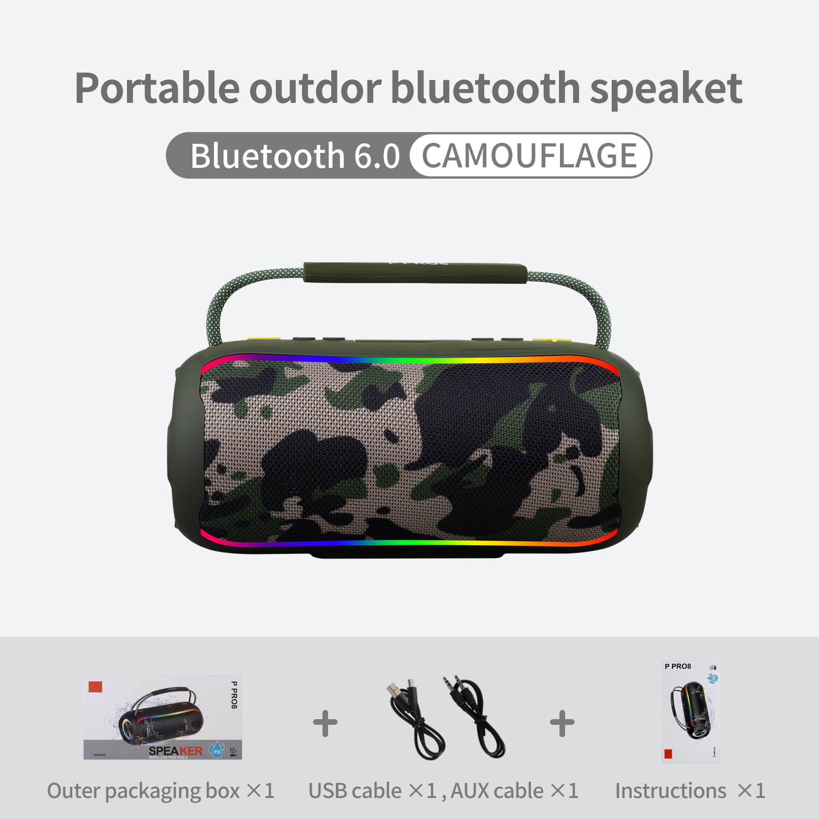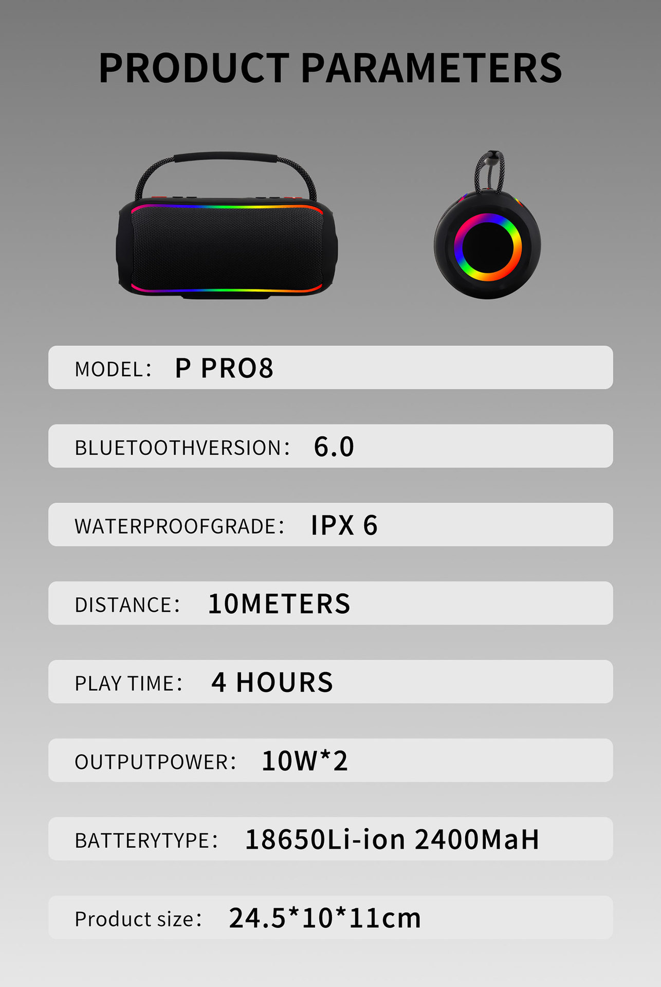 대외 무역 국경 폭발 P PRO8 블루투스 스피커 BOOMBOX 휴대용 20W 고출력 RGB 야외 서브 우퍼