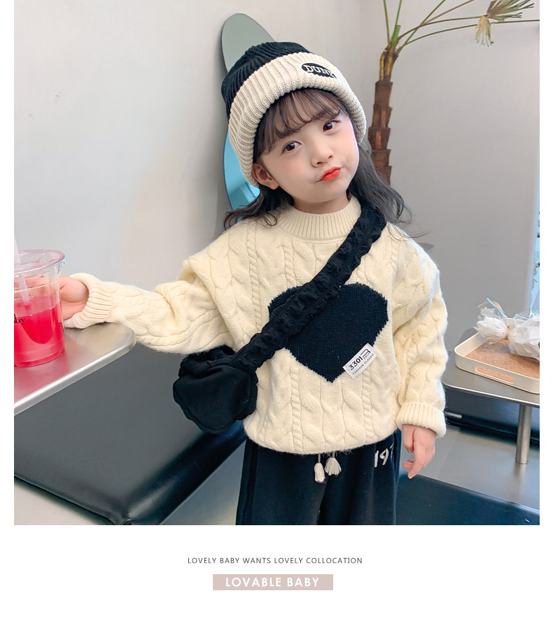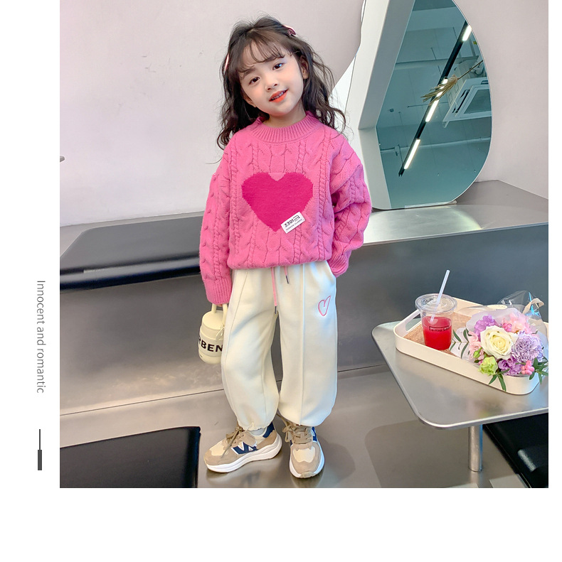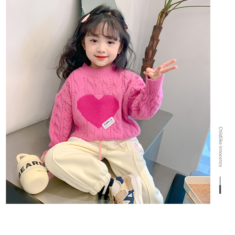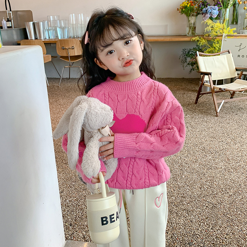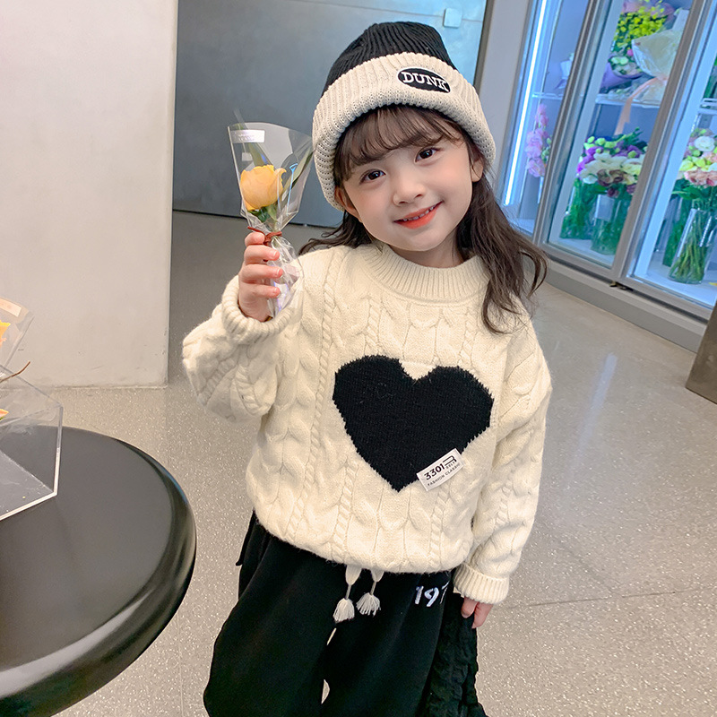 소녀 풀오버 스웨터 2024 새 봄과 가을 한국 아동복 서양식 어린 소녀의 사랑 탑 어린이 니트 스웨터