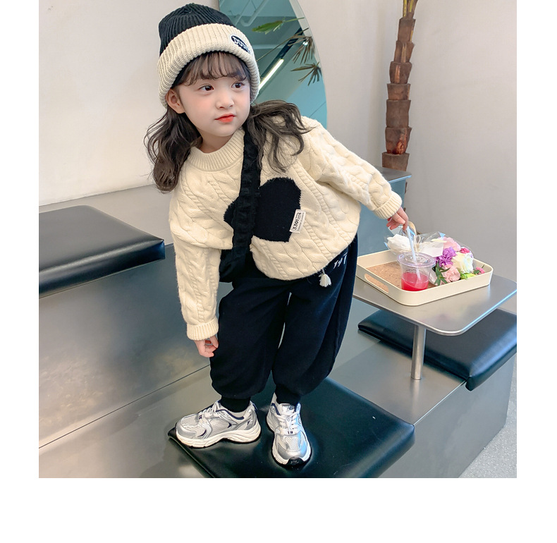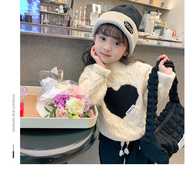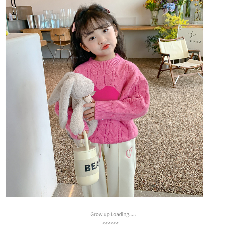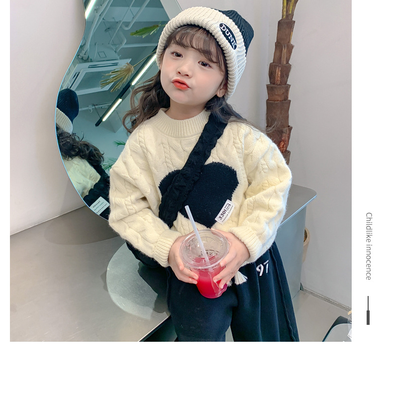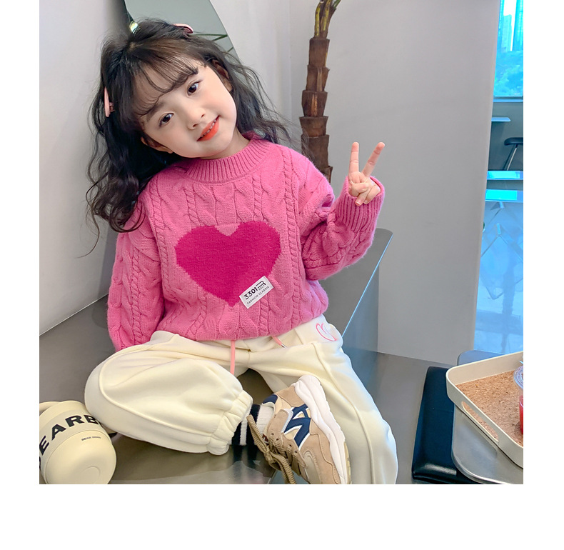 소녀 풀오버 스웨터 2024 새 봄과 가을 한국 아동복 서양식 어린 소녀의 사랑 탑 어린이 니트 스웨터