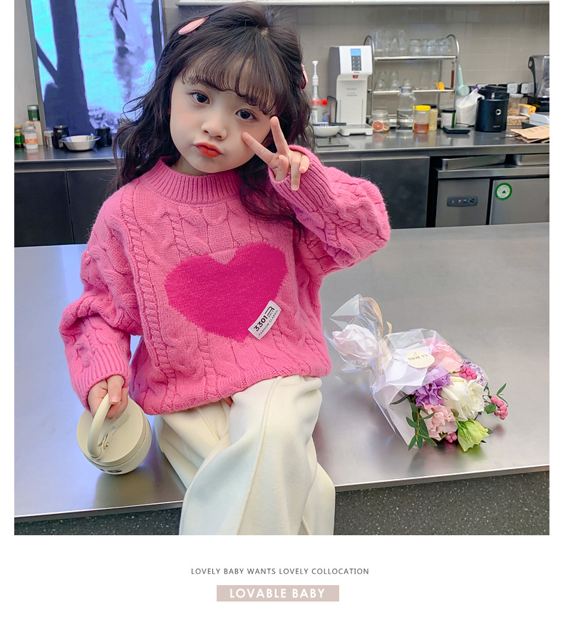 소녀 풀오버 스웨터 2024 새 봄과 가을 한국 아동복 서양식 어린 소녀의 사랑 탑 어린이 니트 스웨터스토어 가기