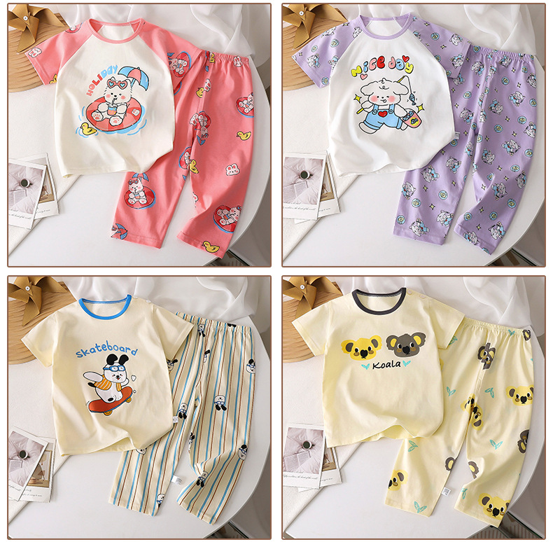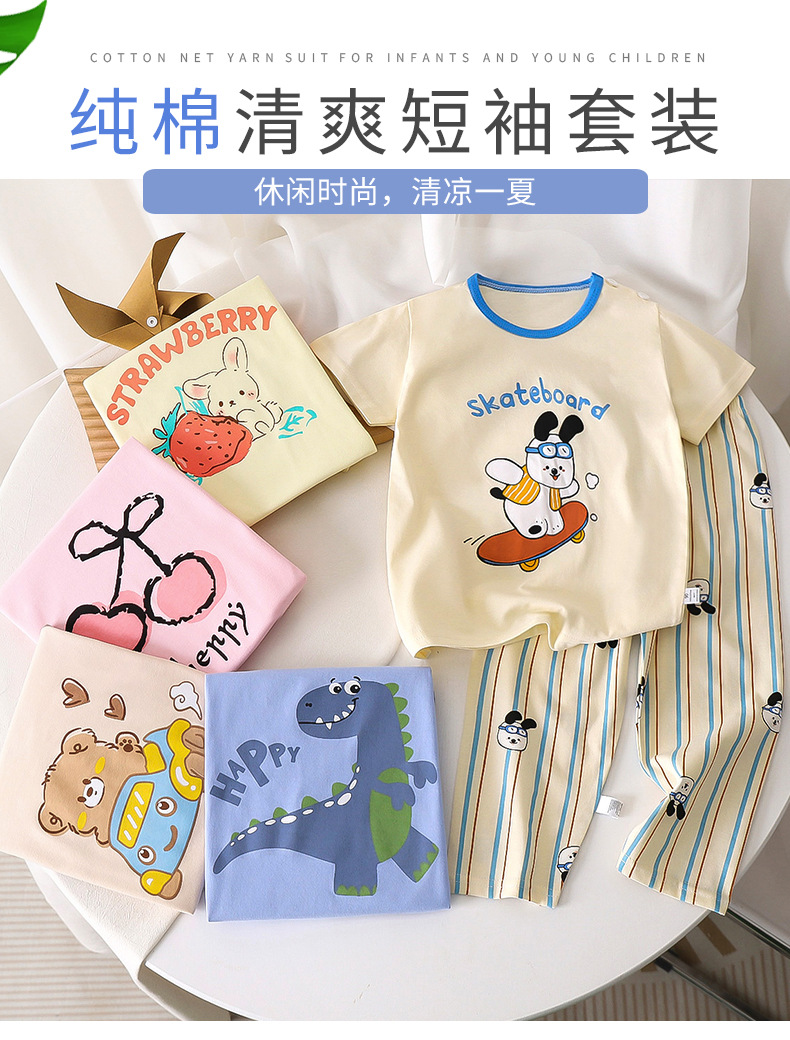 어린이 반팔 세트 순면 여름 아기 티셔츠 남아 홈웨어 2026 신상 여아 잠옷 아동복스토어 가기