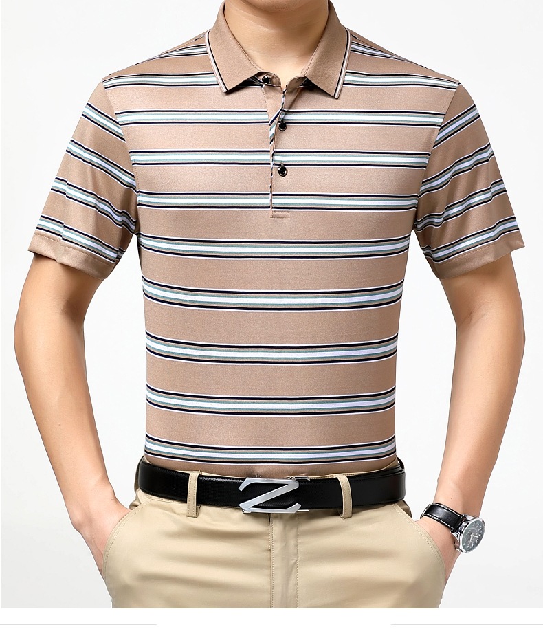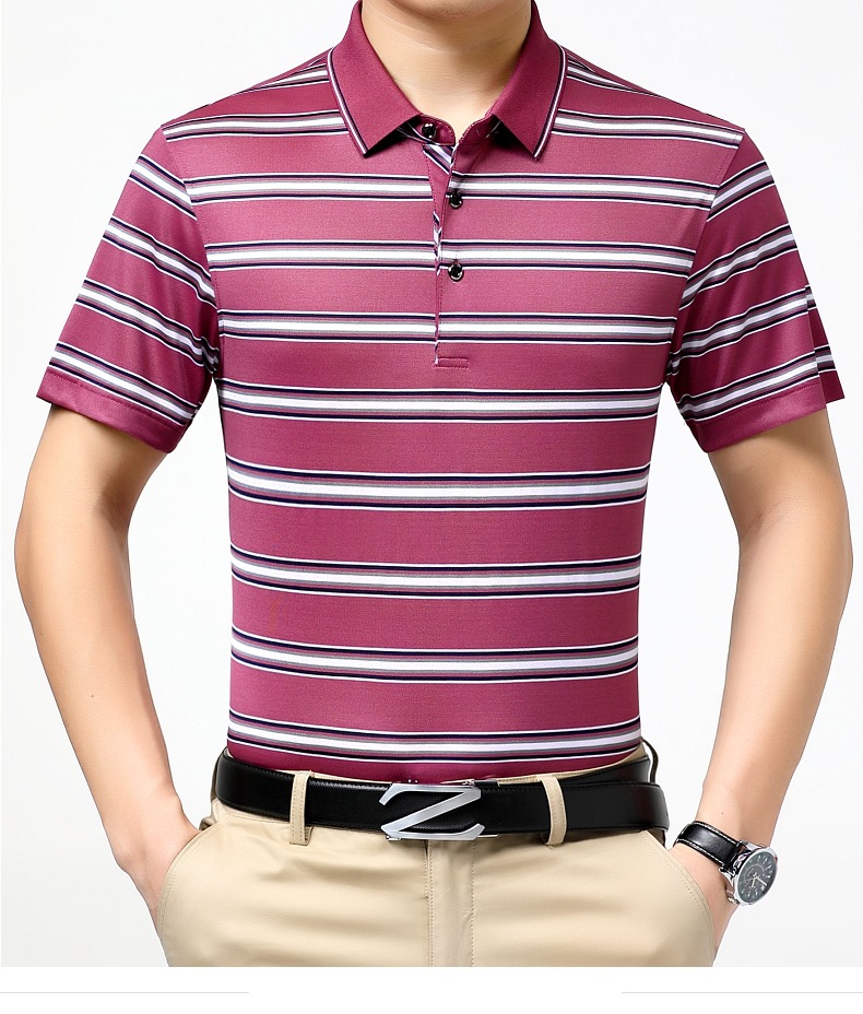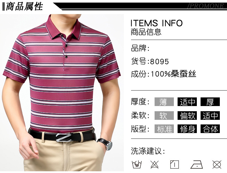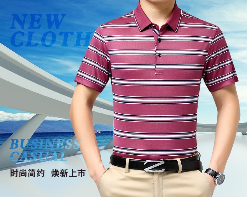 도매 하이 엔드 브랜드 여름 남성 중년 아버지 실크 티셔츠 짧은 소매 비즈니스 캐주얼 POLO 셔츠