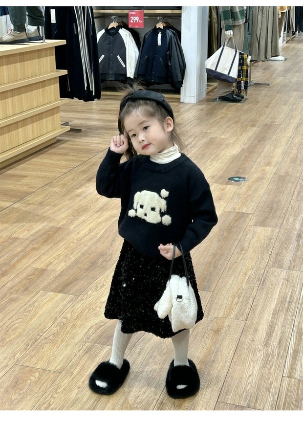 • 블랙 스팽글, 짧은 봄, 가을 스타일 (허리가 보이지 않음)