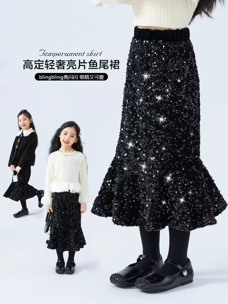 소녀 스퀸 스커트 2025 봄과 가을 새로운 여성 패션 올 매치 비즈 스커트 올 매치 피쉬 테일 스커트스토어 가기