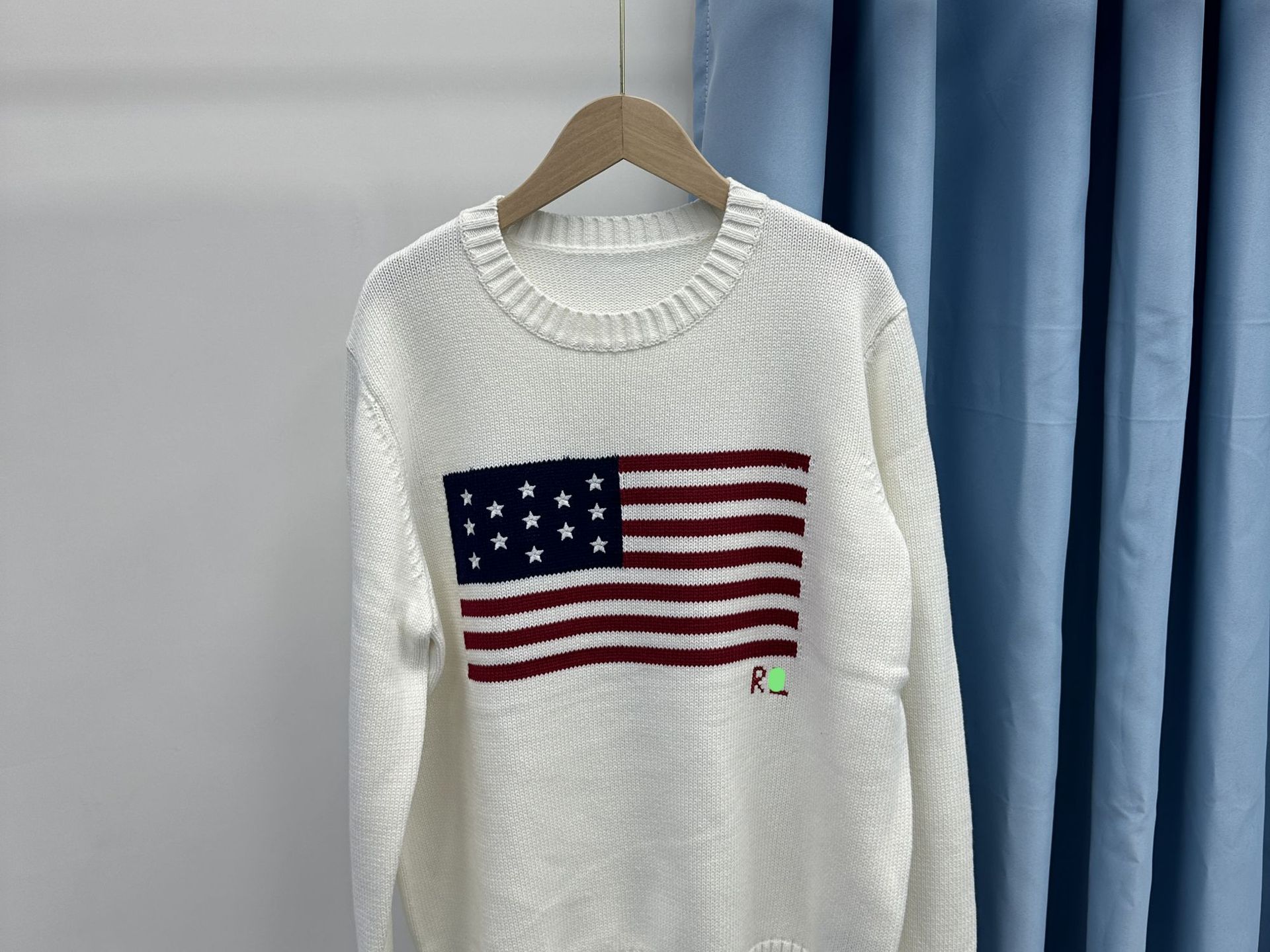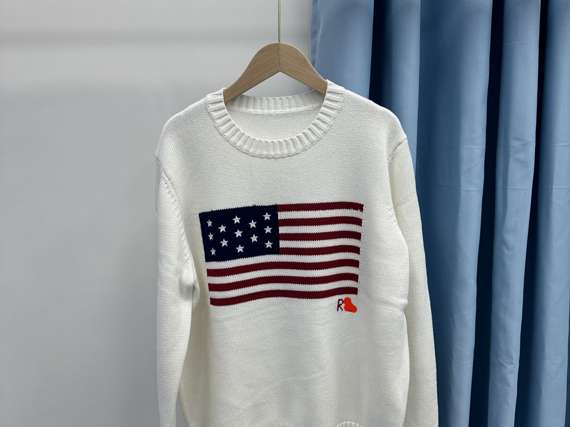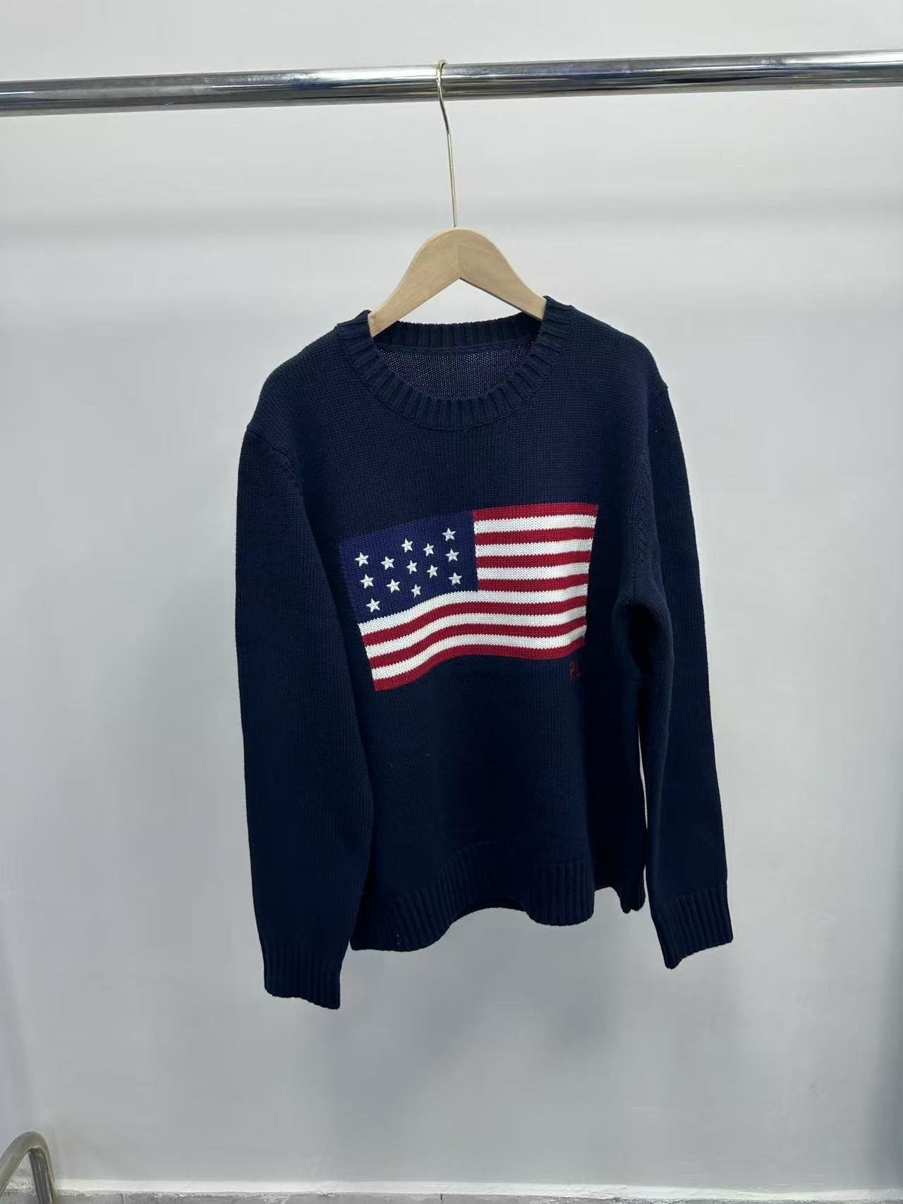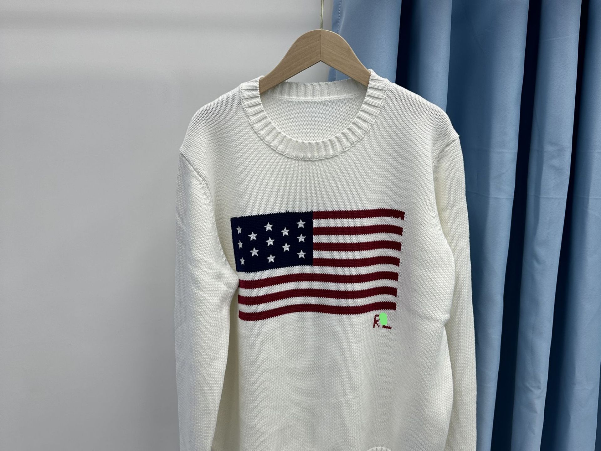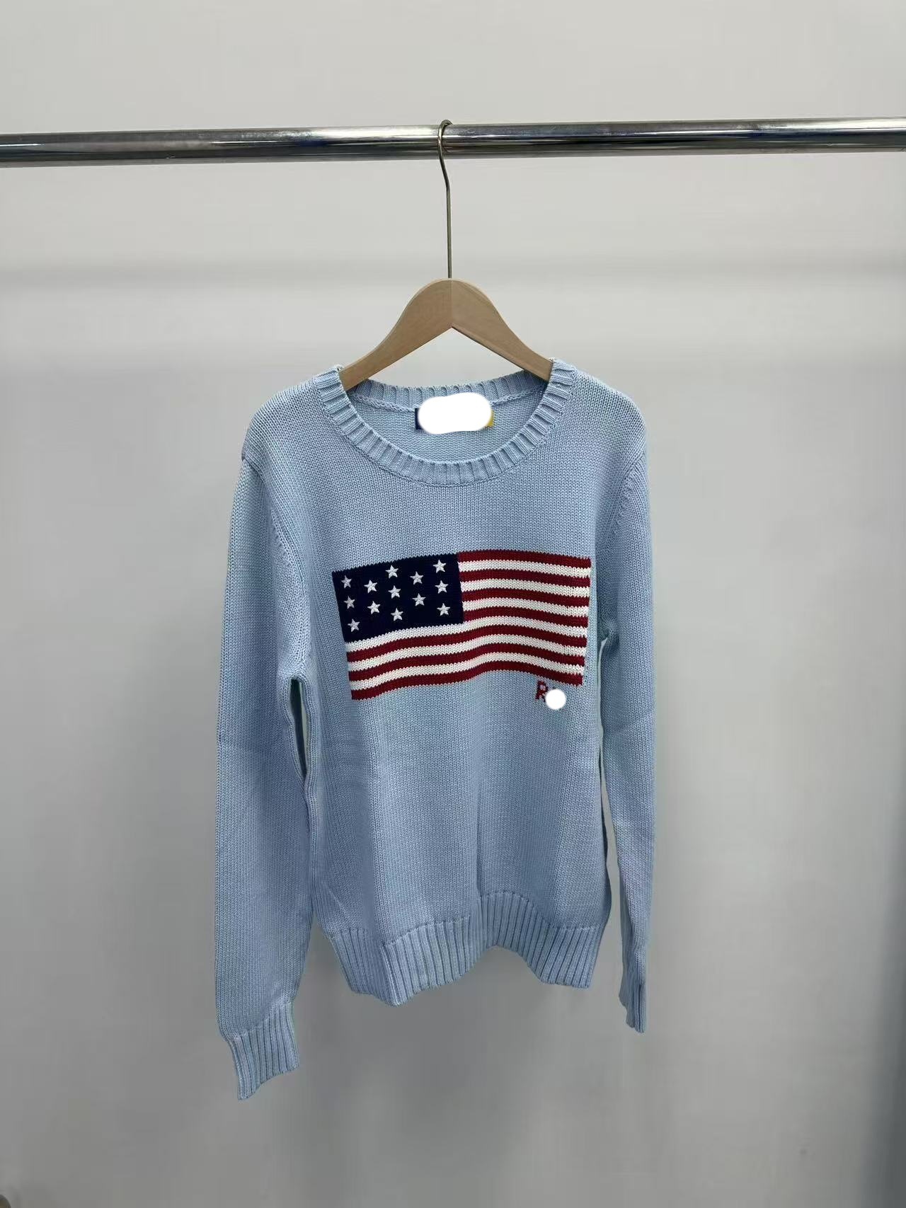 하이 버전 R.L 유럽과 미국의 새로운 느슨한 둥근 목 깃발 패턴 간단한 조커 니트 스웨터 캐주얼 조커