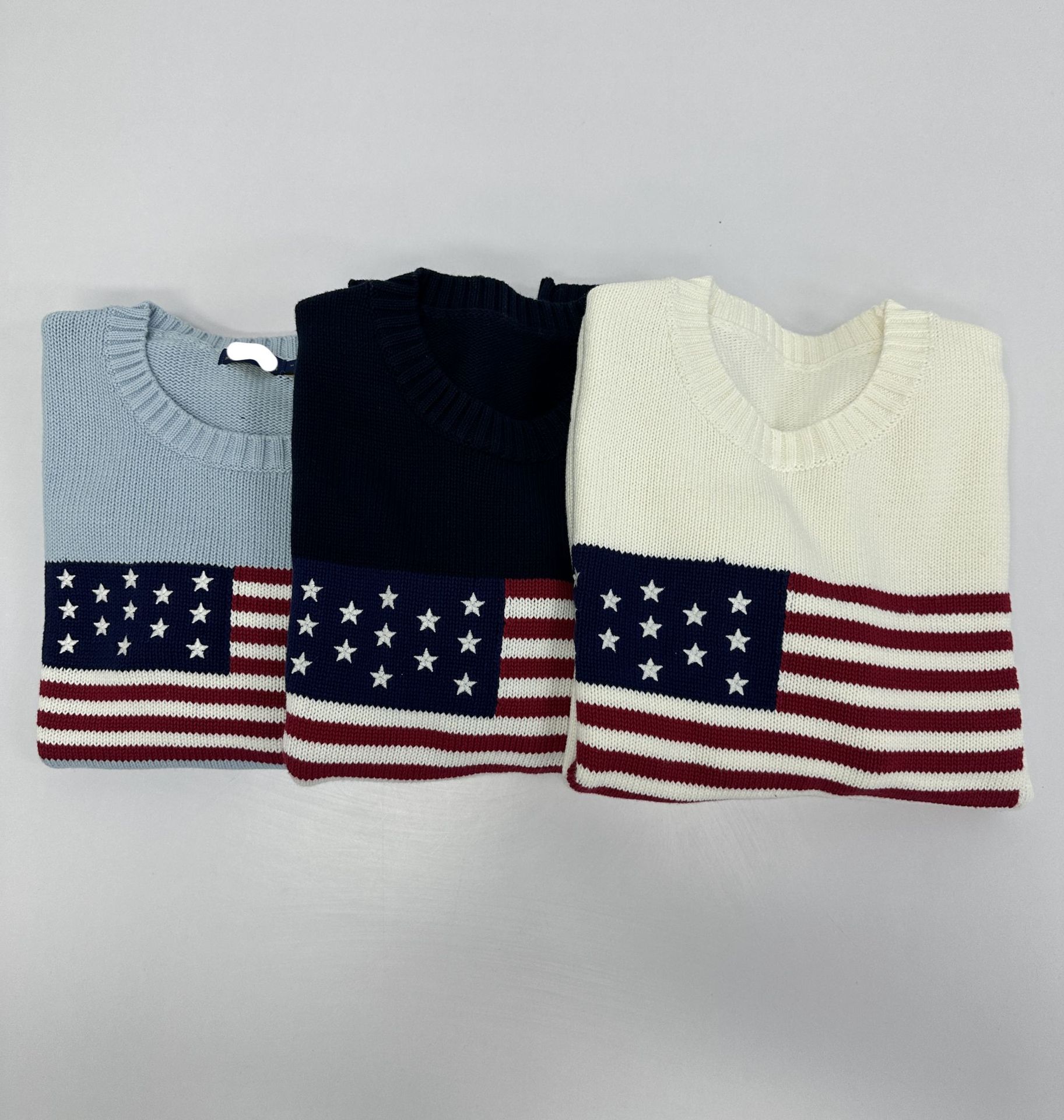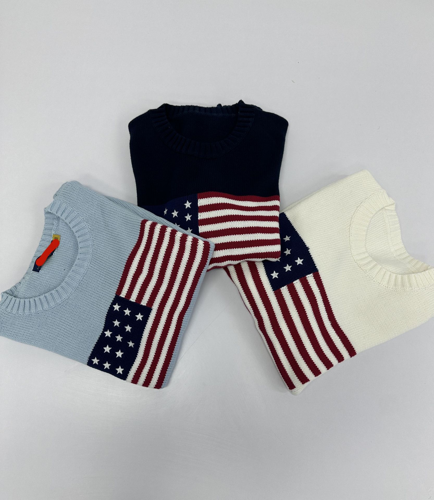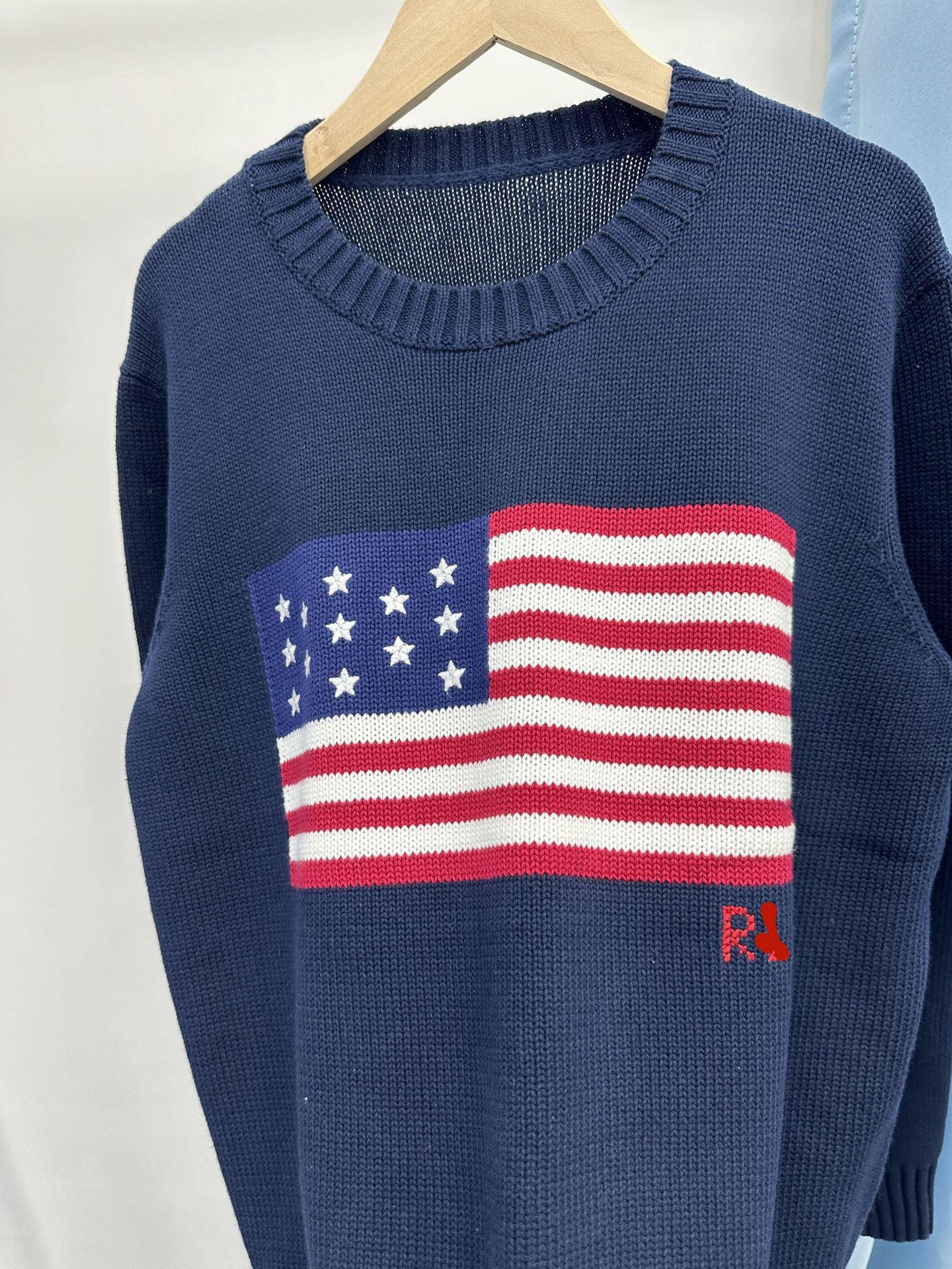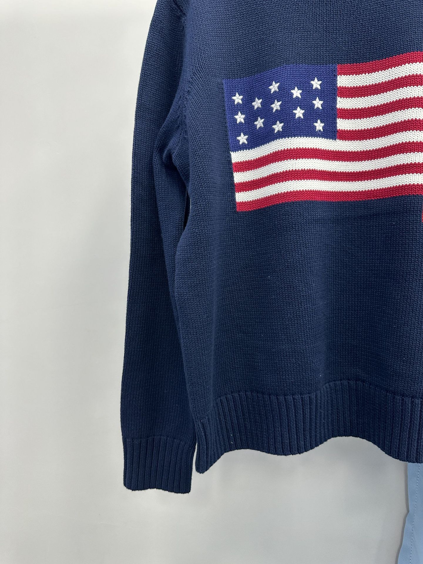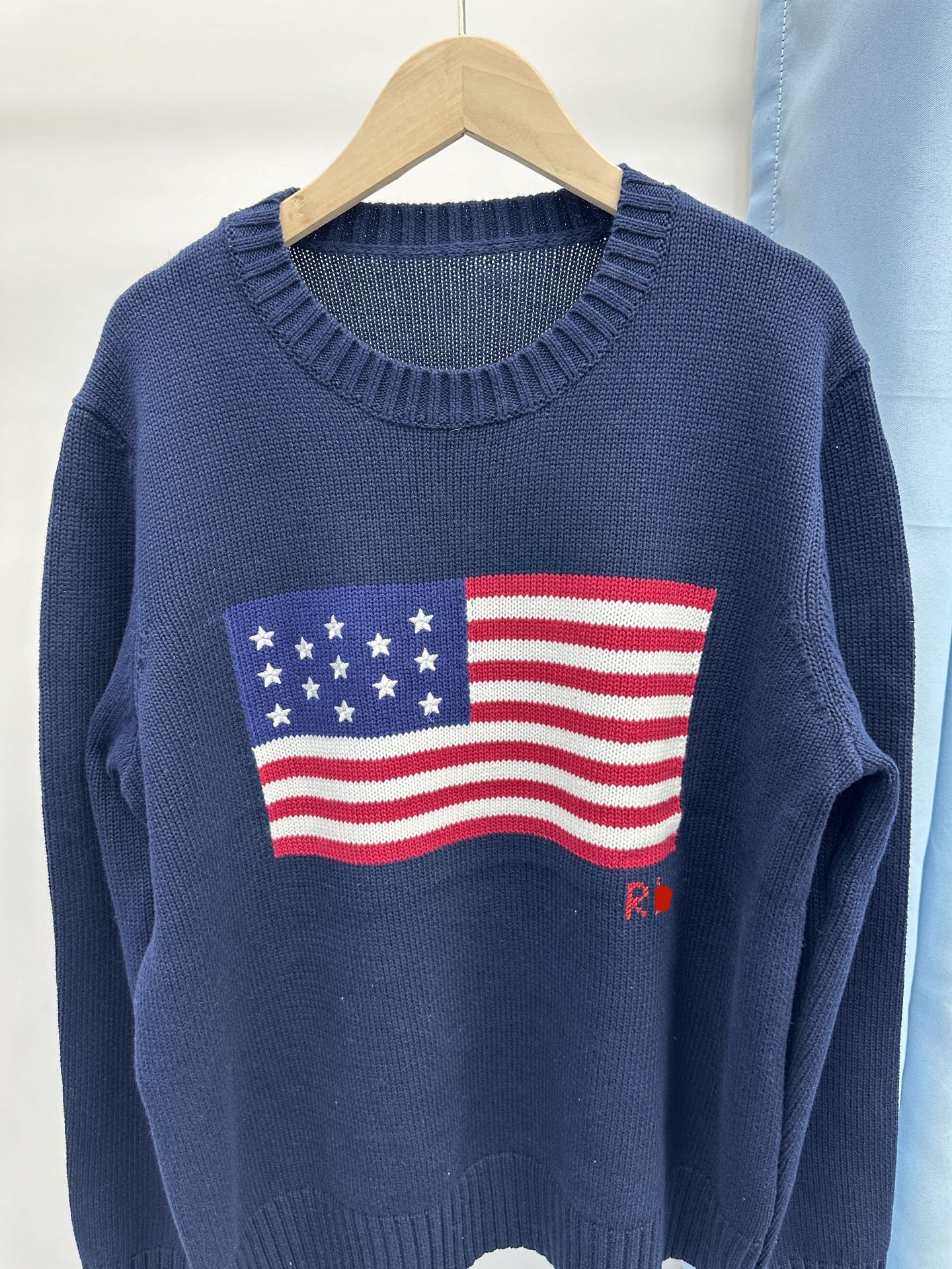 하이 버전 R.L 유럽과 미국의 새로운 느슨한 둥근 목 깃발 패턴 간단한 조커 니트 스웨터 캐주얼 조커