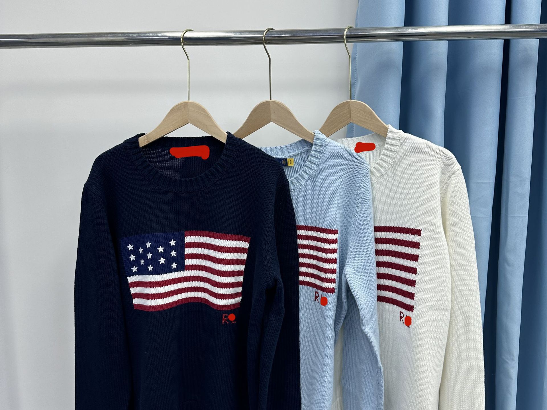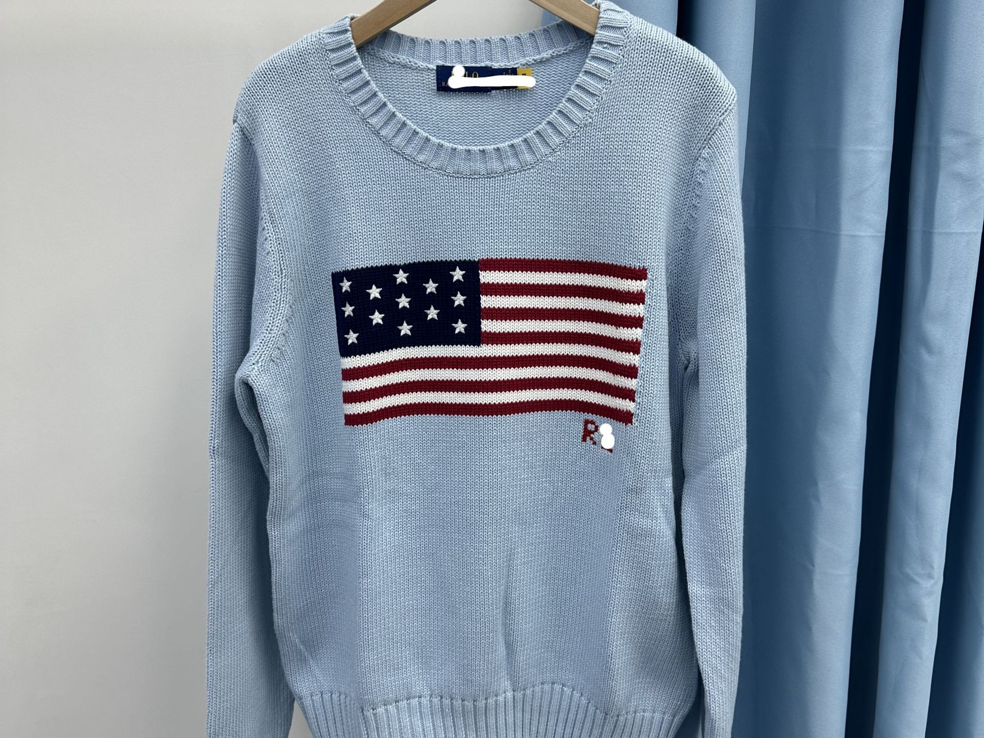하이 버전 R.L 유럽과 미국의 새로운 느슨한 둥근 목 깃발 패턴 간단한 조커 니트 스웨터 캐주얼 조커스토어 가기