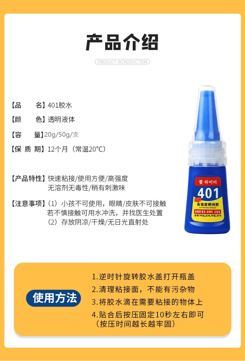 강한 투명한 낮은 알비노 한국 스타일 401 접착제 다기능 네일 아트 부드러운 신발 수리 금속 플라스틱 보석스토어 가기