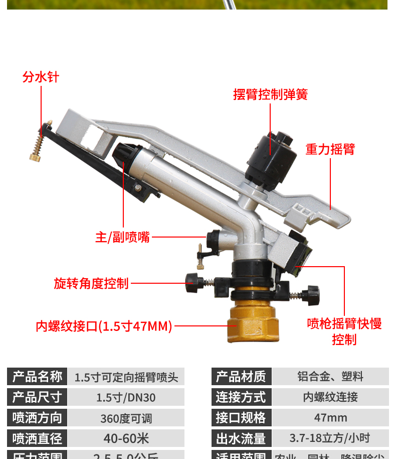 스프레이 건 살포 과수원 아티팩트 스프링클러 노즐 회전 물 스프링클러 냉각 급수 관개 먼지 제거 로커 암 잔디 자동