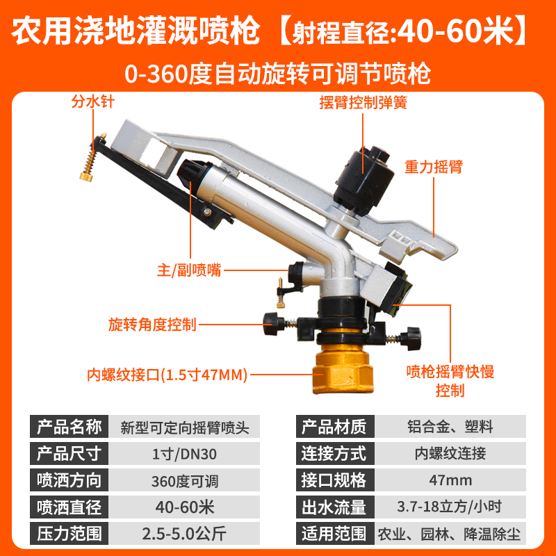 • 35 로커암 스프레이 건 + 1.5m 수직 폴 브래킷, 2.5inch 워터 호스에 연결, 무료 원료 벨트