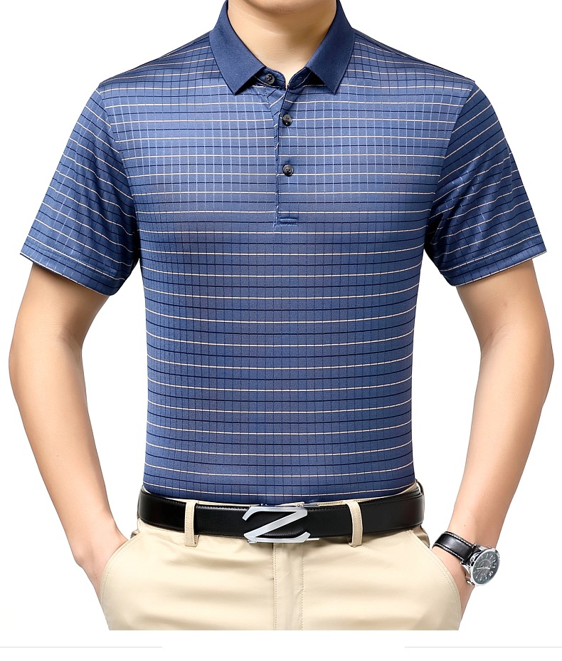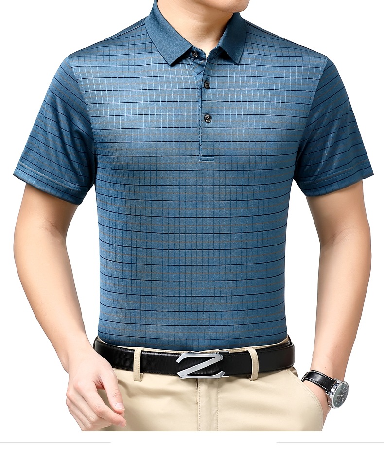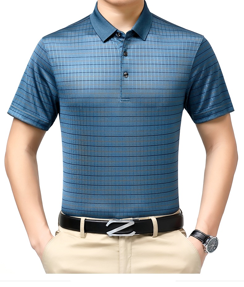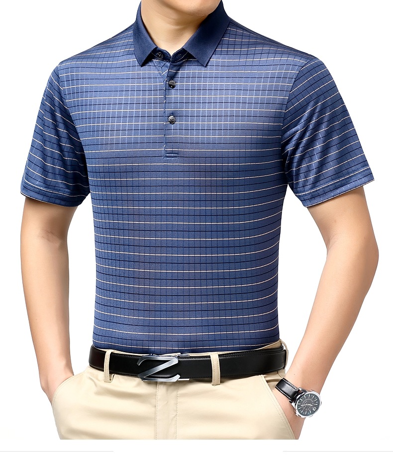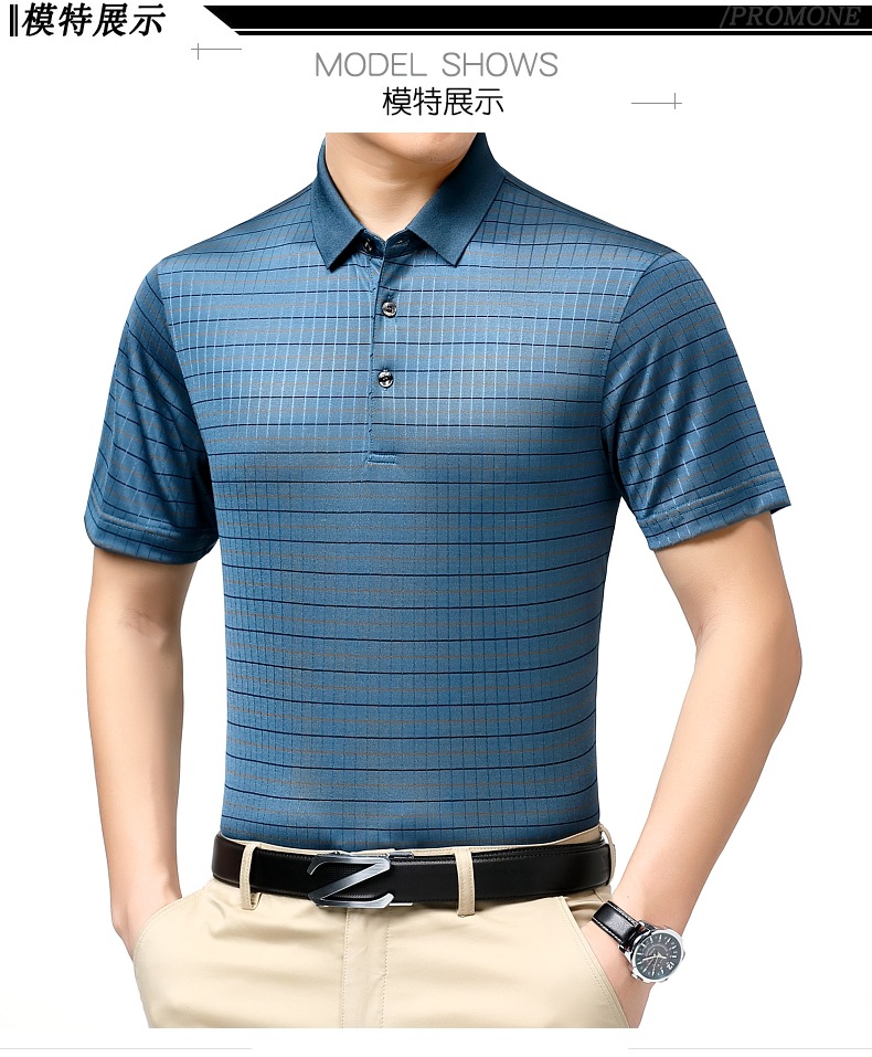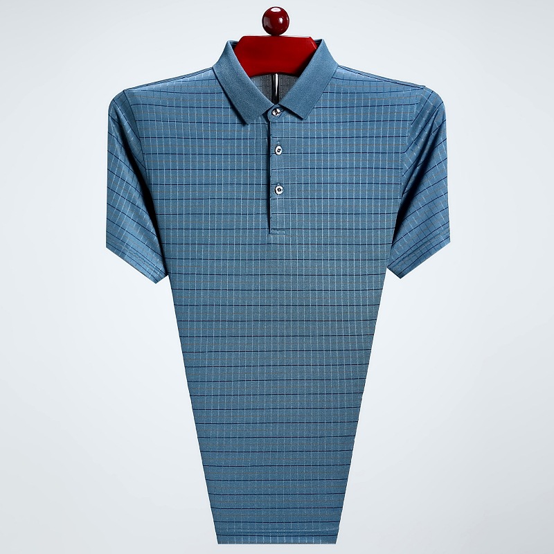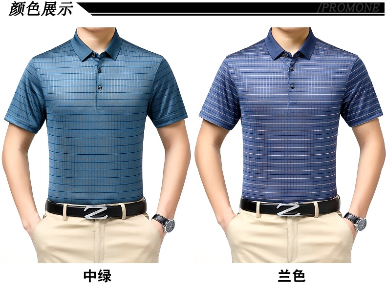 도매 가벼운 고급 고급 여름 새로운 뽕나무 실크 티셔츠 최고 비즈니스 얇은 옷깃 남성 짧은 소매 폴로 셔츠