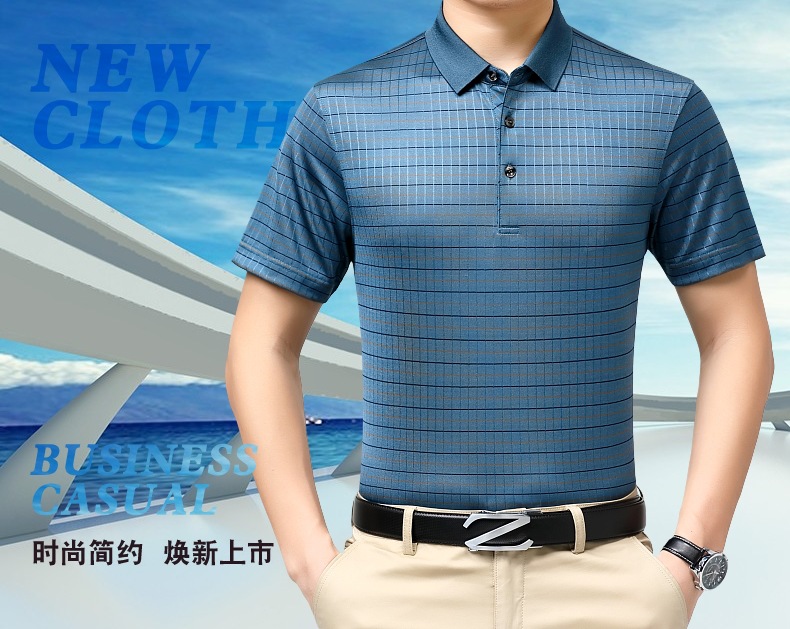 도매 가벼운 고급 고급 여름 새로운 뽕나무 실크 티셔츠 최고 비즈니스 얇은 옷깃 남성 짧은 소매 폴로 셔츠스토어 가기