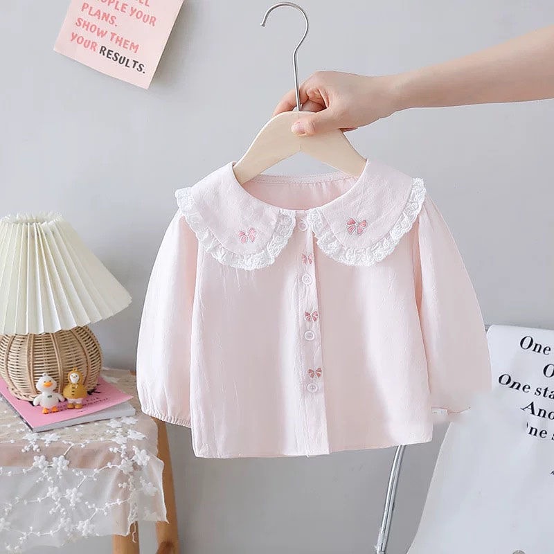 봄과 가을 여성 어린이 의류 셔츠 아기의 서양식 어린이 성격 유행 브랜드 한국 스타일 레이스 활 달콤한 귀여운 셔츠