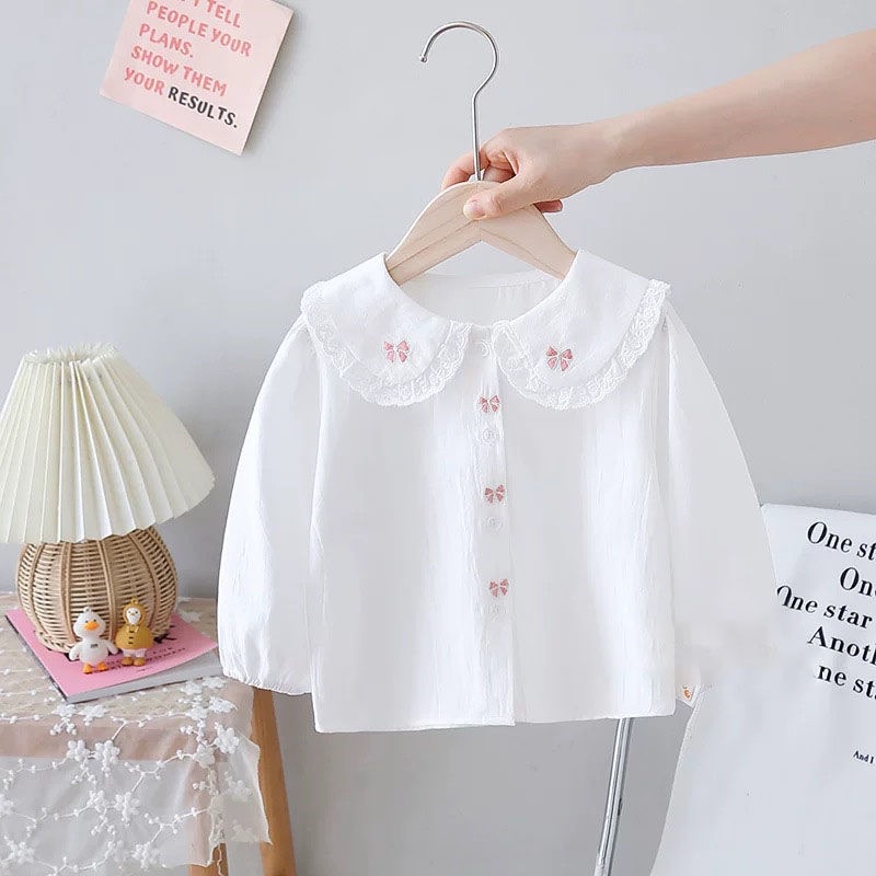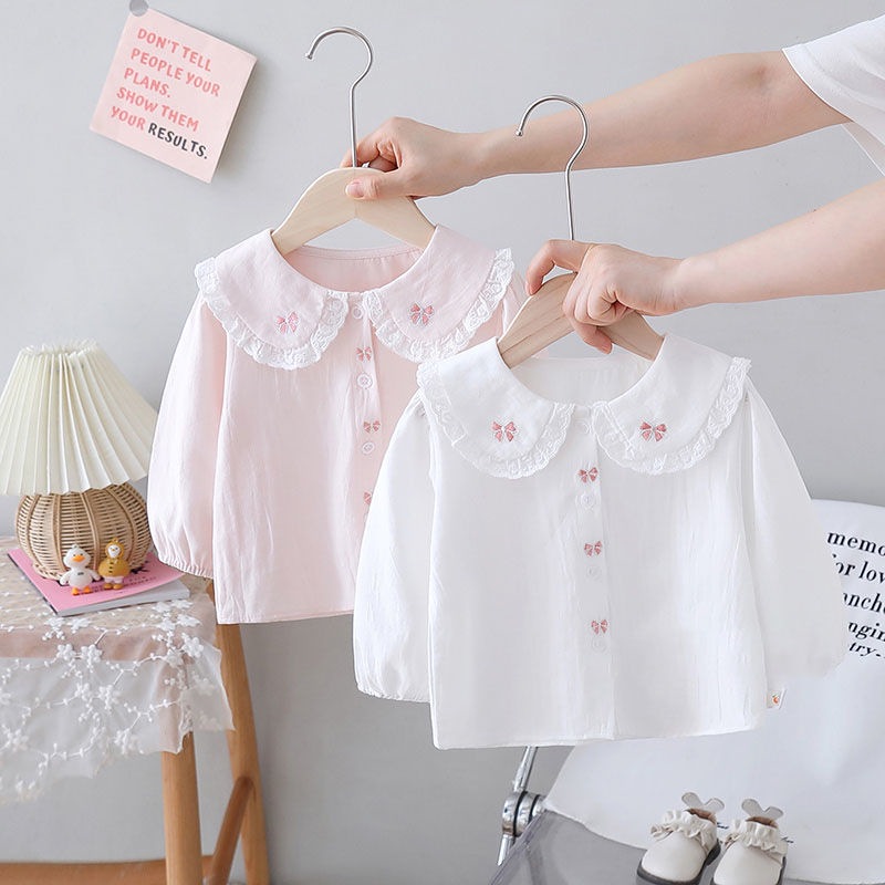 봄과 가을 여성 어린이 의류 셔츠 아기의 서양식 어린이 성격 유행 브랜드 한국 스타일 레이스 활 달콤한 귀여운 셔츠스토어 가기