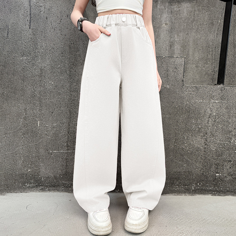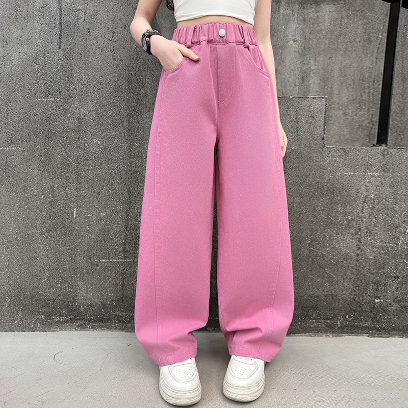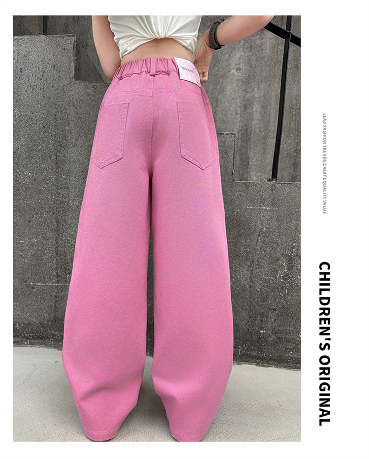 소녀 봄 캐주얼 바지 도매 2025 새로운 느슨한 캐주얼 코튼 마체 바지 큰 어린이 캐주얼 바지 크로스 보더