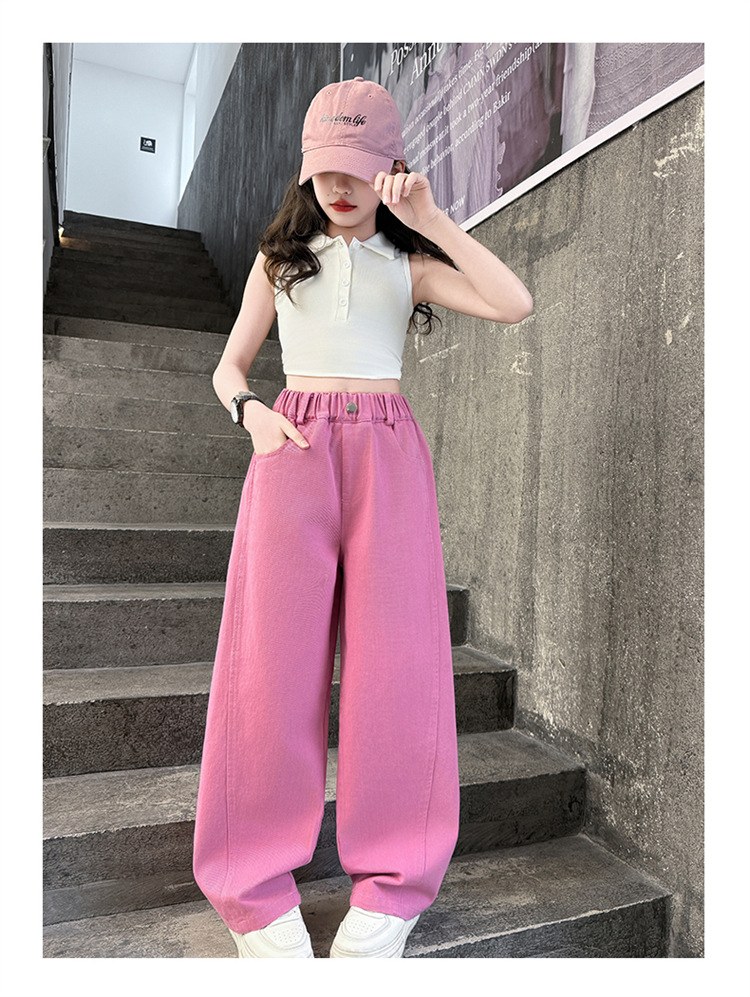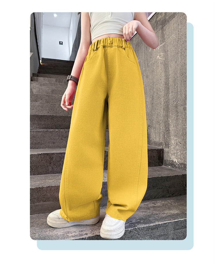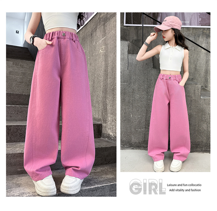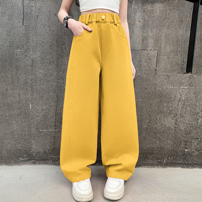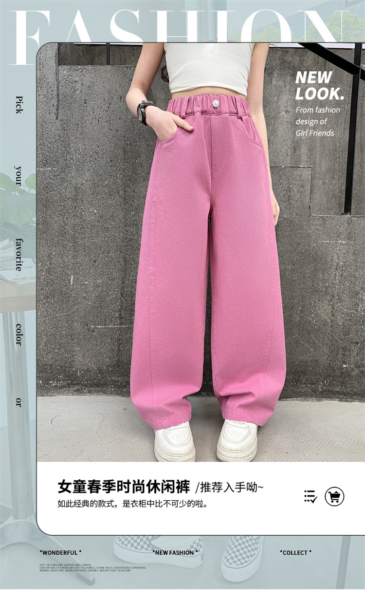 소녀 봄 캐주얼 바지 도매 2025 새로운 느슨한 캐주얼 코튼 마체 바지 큰 어린이 캐주얼 바지 크로스 보더스토어 가기