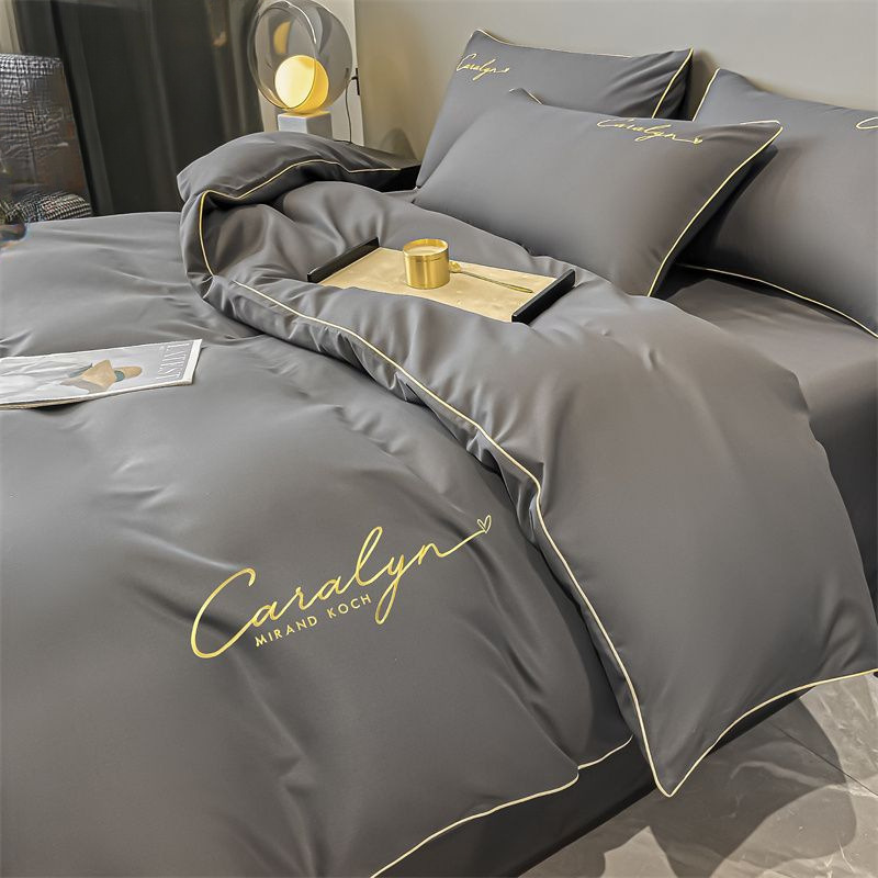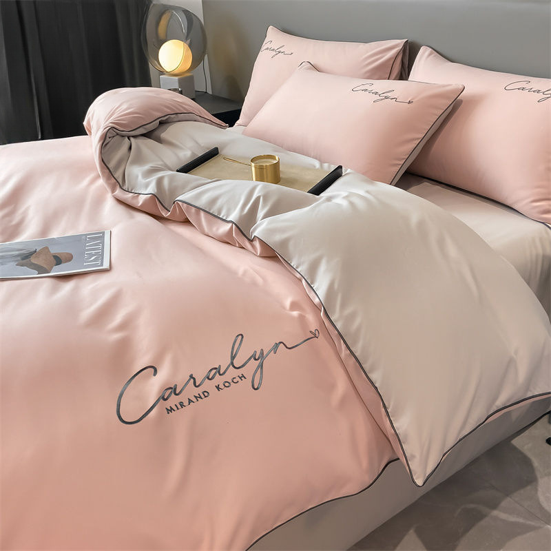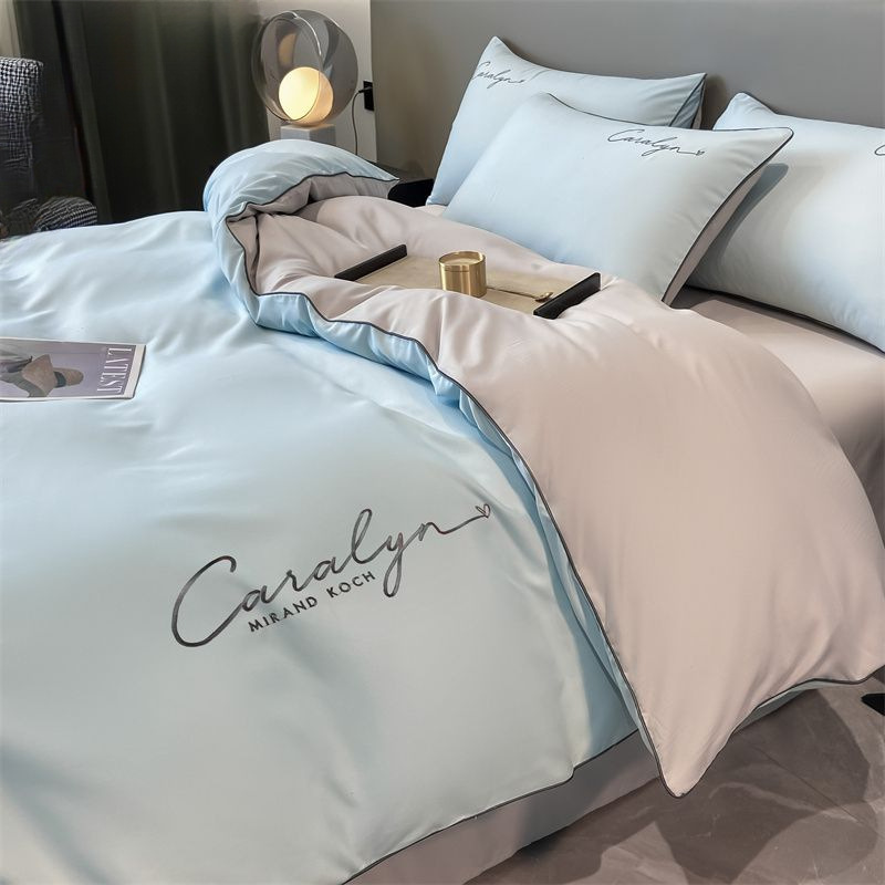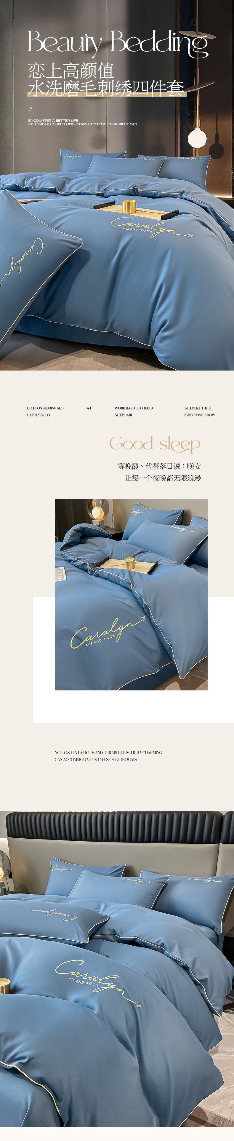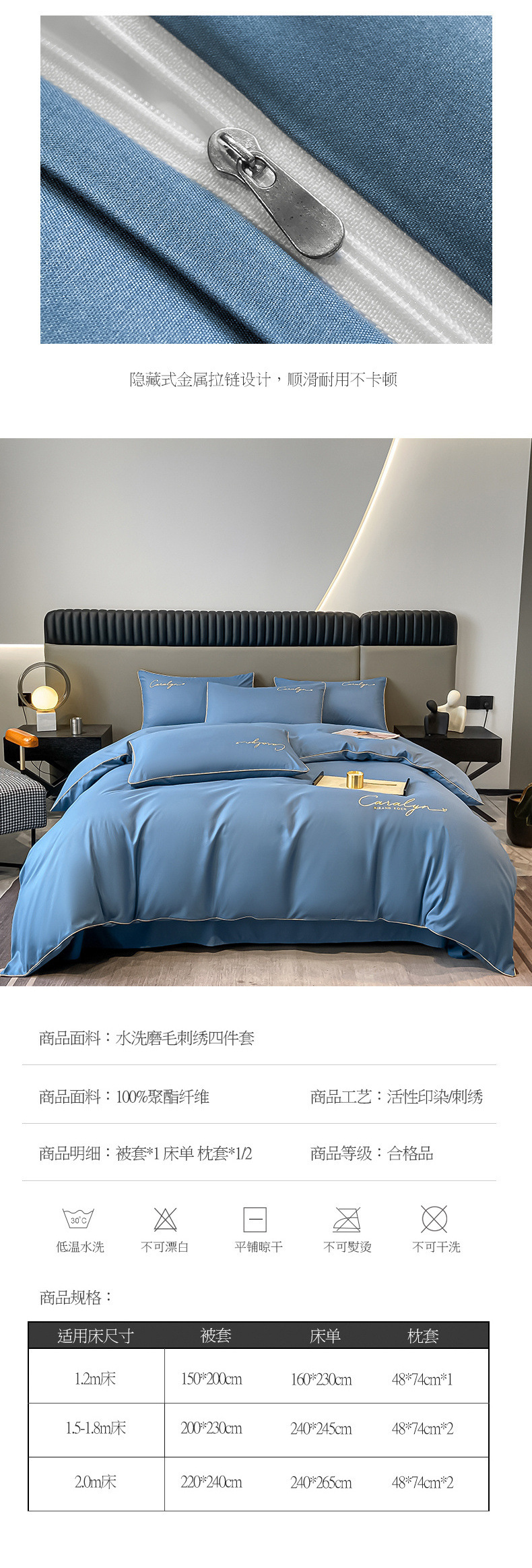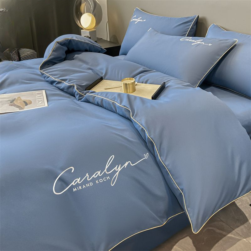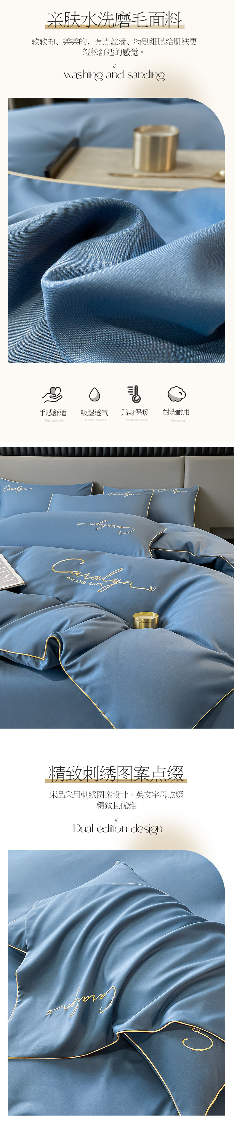 2025 새로운 가을과 겨울 세척면 4 피스 세트 간단한 자수 샌딩 침대 시트 퀼트 침대 기숙사 3 세트