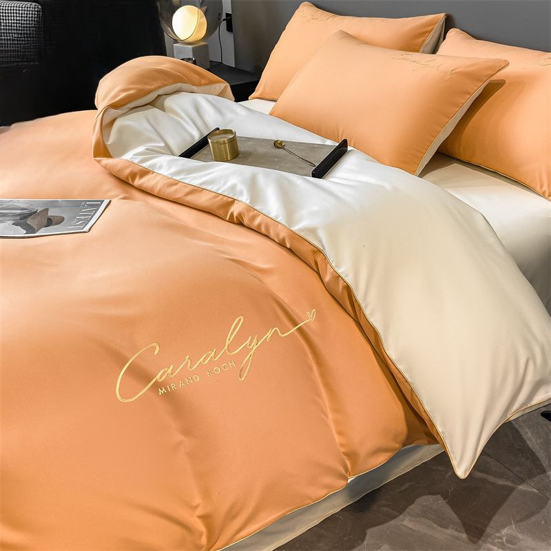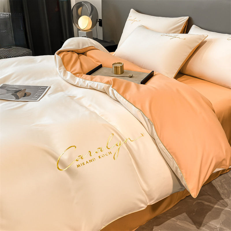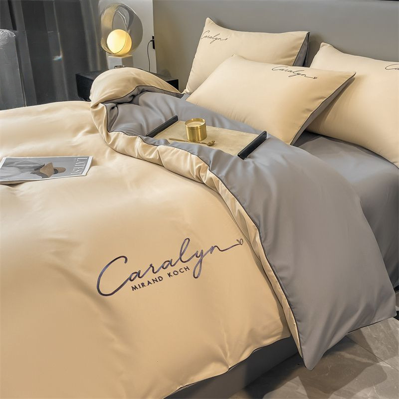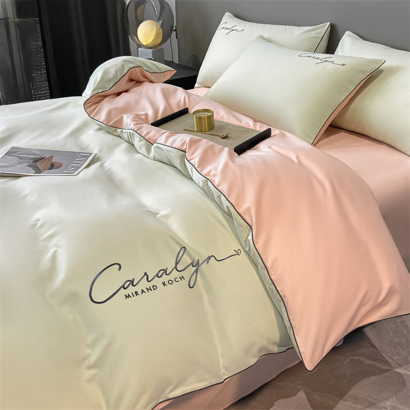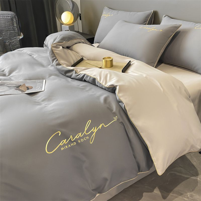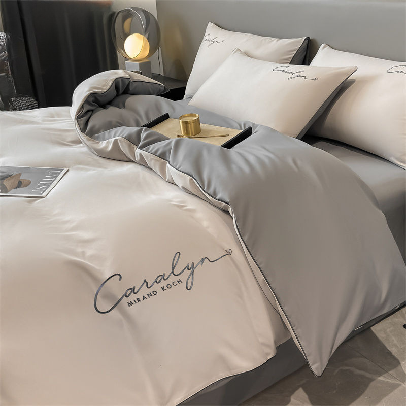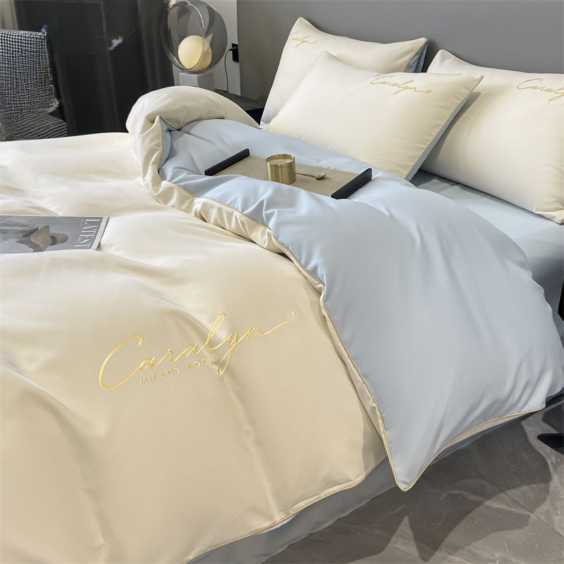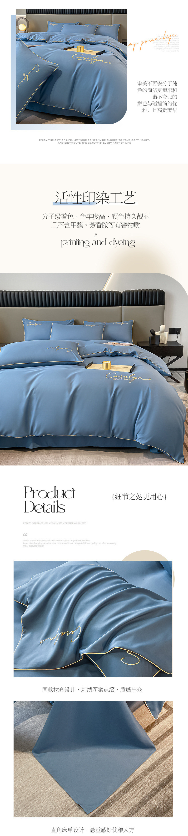 2025 새로운 가을과 겨울 세척면 4 피스 세트 간단한 자수 샌딩 침대 시트 퀼트 침대 기숙사 3 세트