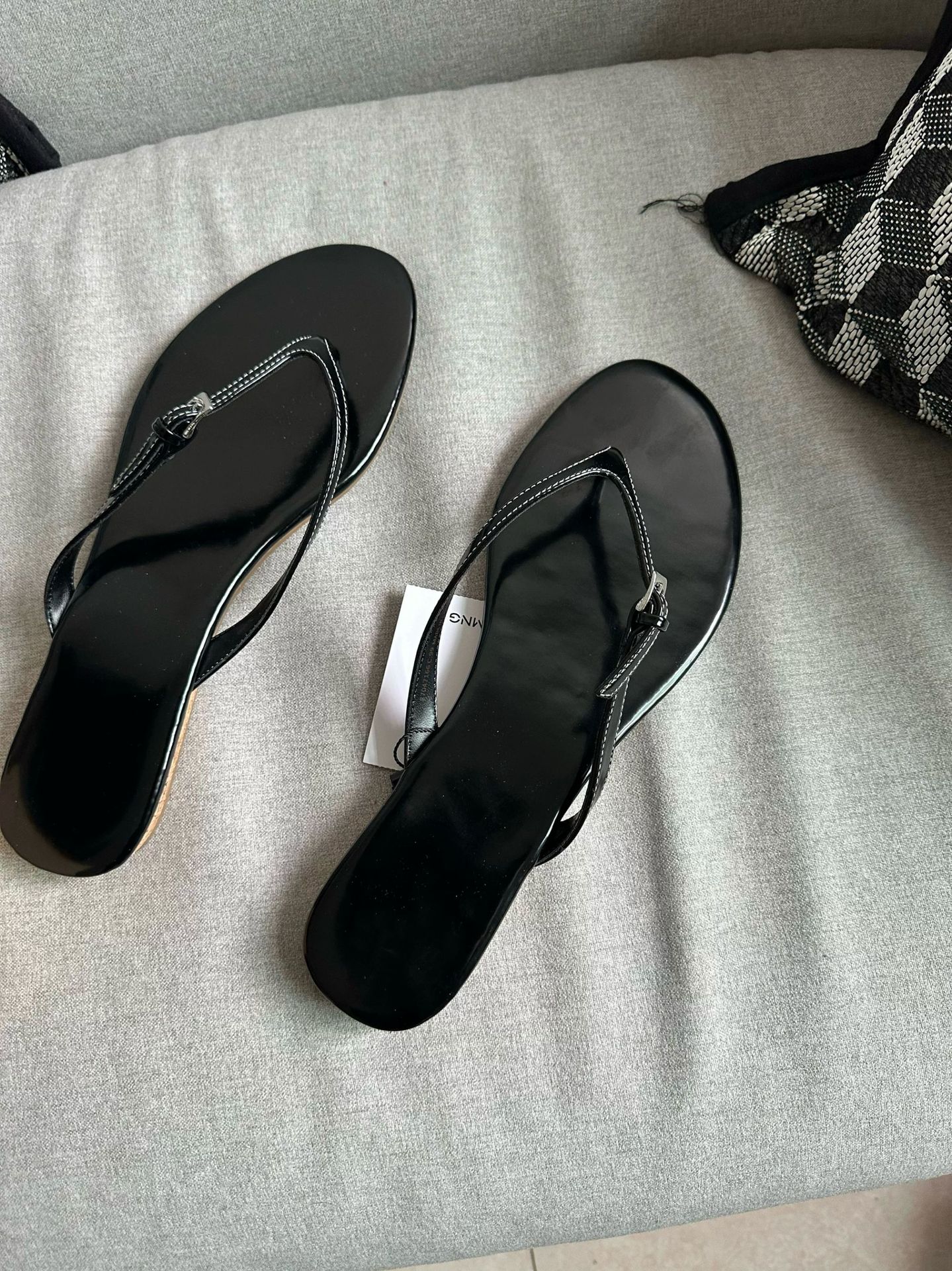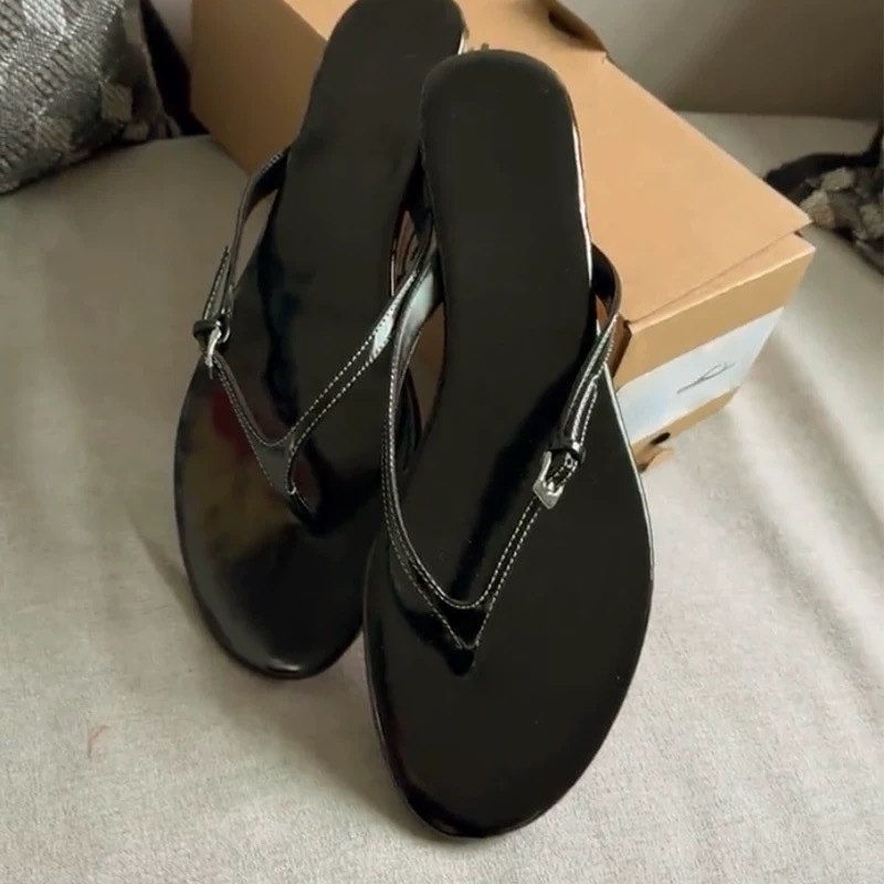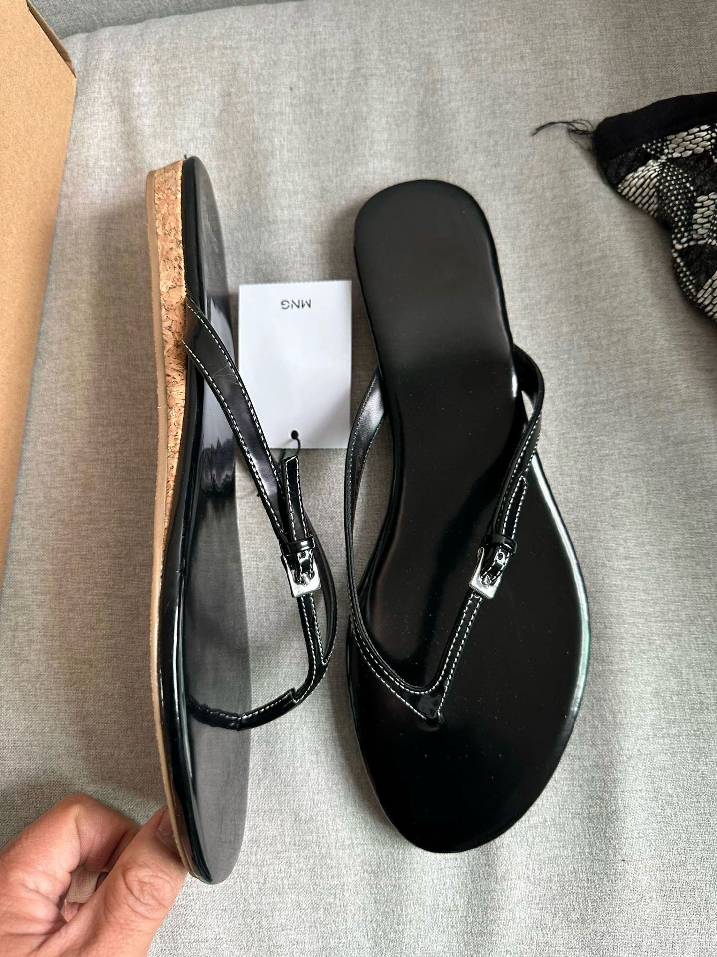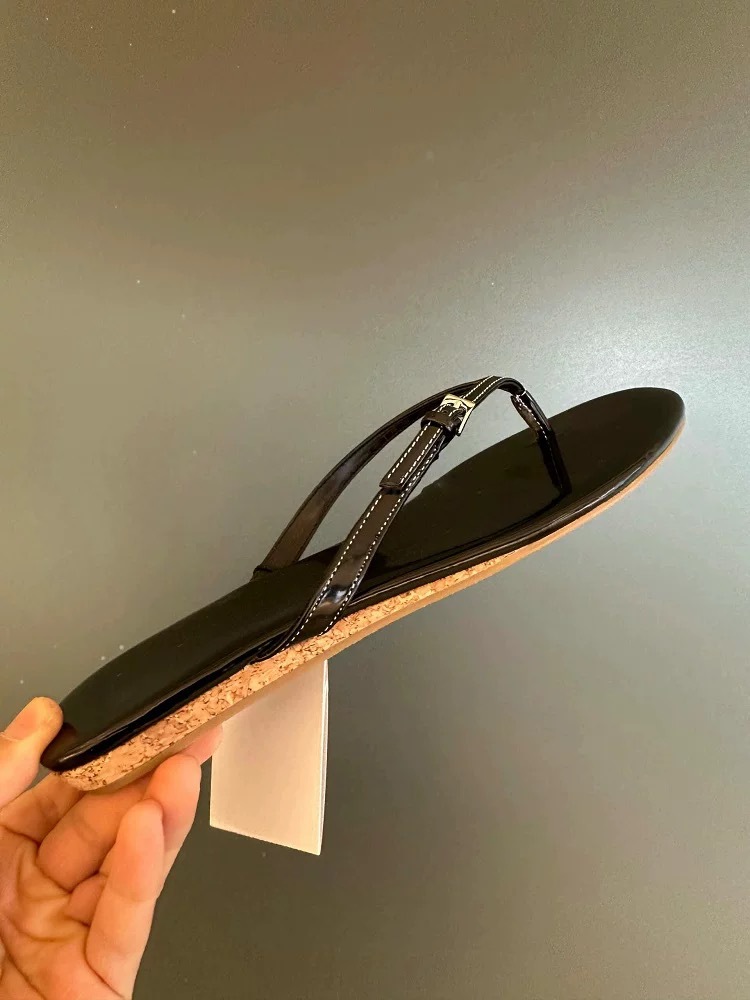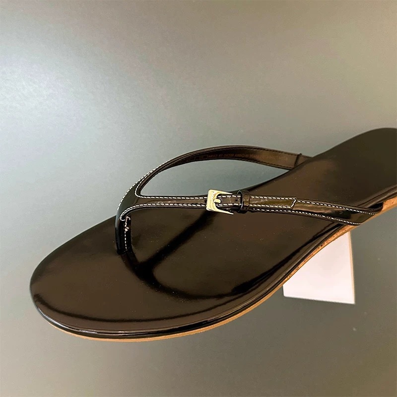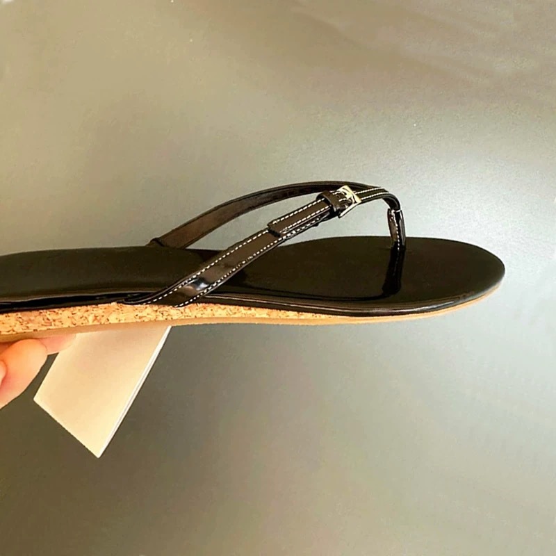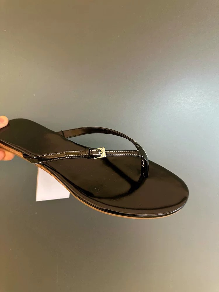 정품 가죽 한국 스타일 우드 그레인 작은 쐐기 플랫 클립 플립 플롭 여성 외부 착용 새로운 2025 여름 해변 샌들