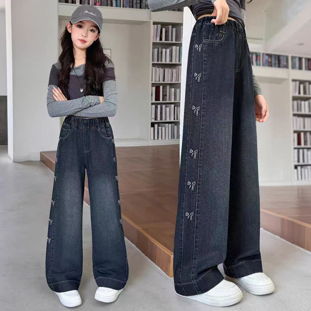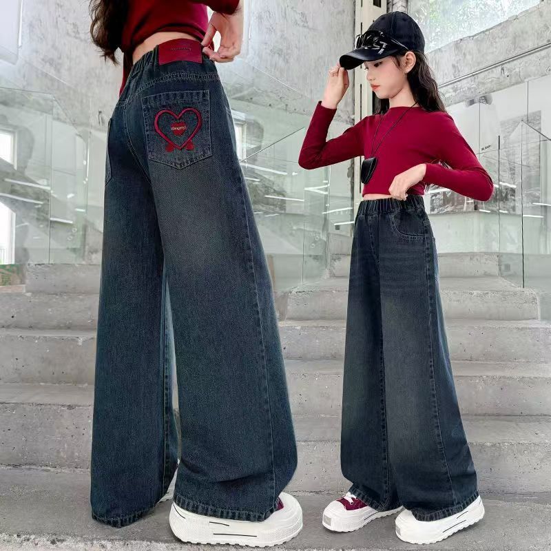 여자 청바지 도매 2025 새로운 cuhk 어린이 서양식 레저 넓은 다리 바지 긴 바지 제조 업체 도매스토어 가기