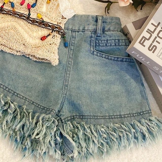 여자 여름 세트 새로운 2025 어린이 중공 조끼 슬링 어린이 데님 반바지 3 피스 세트