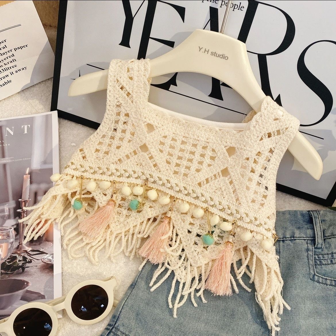 • 퍼볼 태슬 조끼 + 멜빵