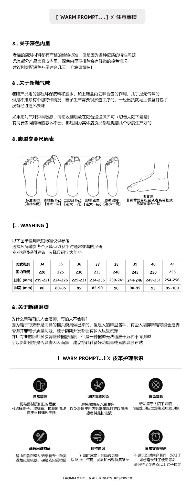 [关于尺码]是否偏小请关注颜色分类处有没有(偏小一码)的备注。如果没有均为标准码,按照平时的拍就可以了。脚肉的亲可以酌情往大一码拍
