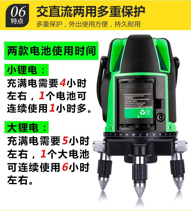 • 낙하 방지 크리스탈 슈퍼 그린 라이트 5라인 + 듀얼 리튬 배터리