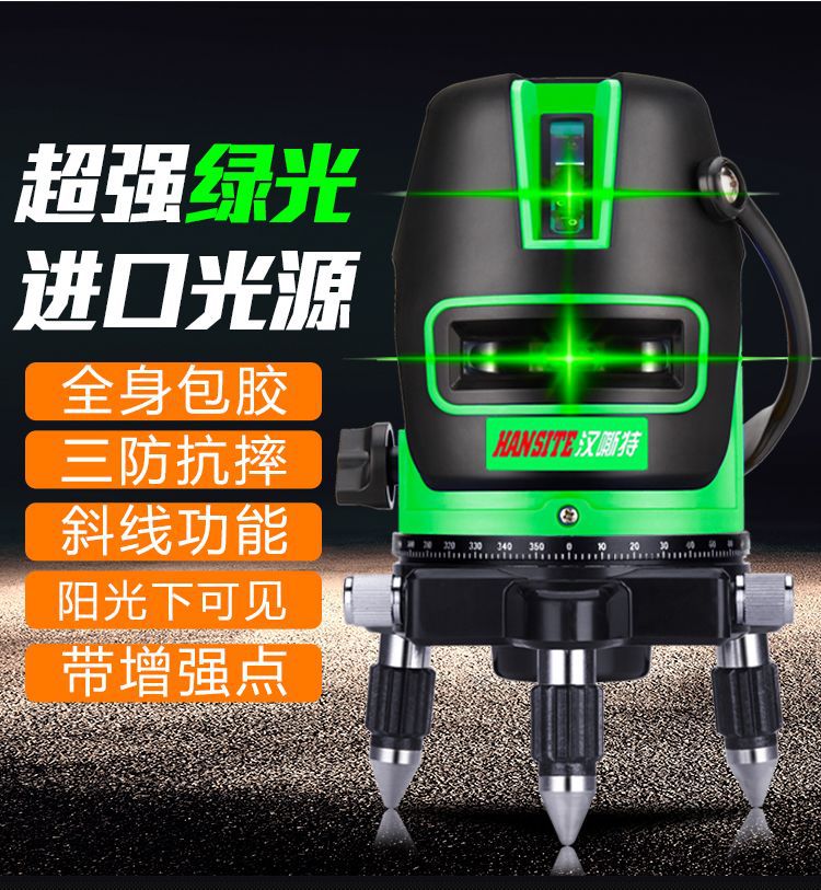 • 낙하 방지 크리스탈 슈퍼 그린 라이트 2라인 + 듀얼 리튬 배터리 + 삼각대