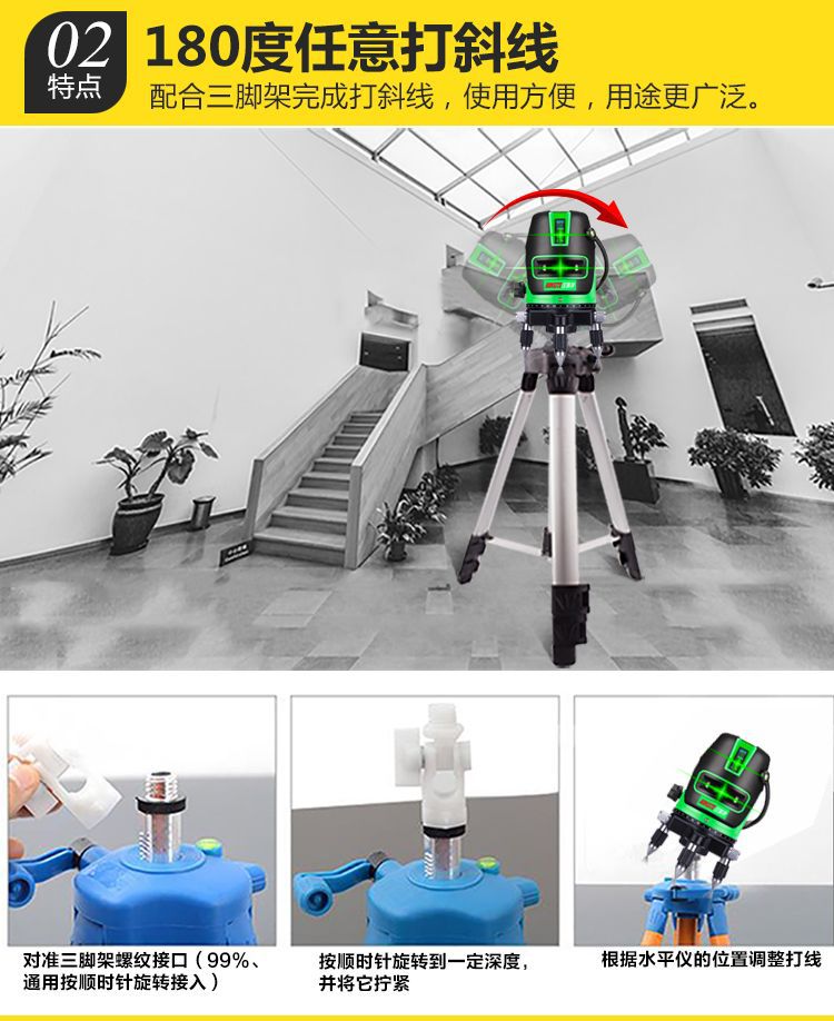 • 낙하 방지 크리스탈 슈퍼 그린 라이트 3라인 + 듀얼 리튬 배터리 + 삼각대