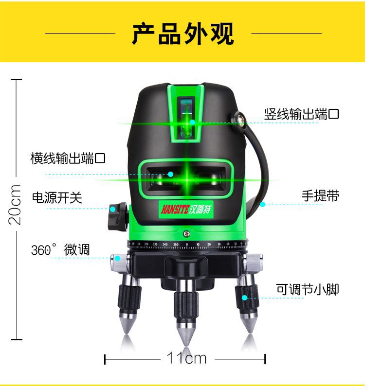 • 낙하 방지 크리스탈 슈퍼 그린 라이트 5라인 + 듀얼 리튬 배터리 + 삼각대