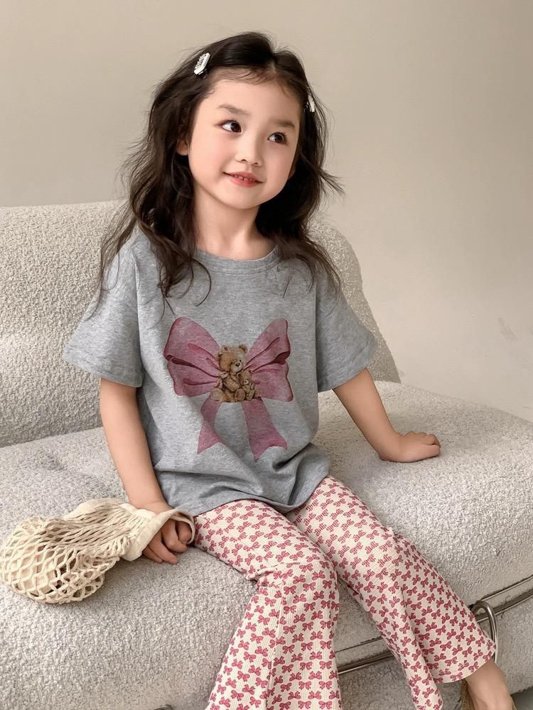 여름 소녀 세트 아기 세련된 어린이 맞춤형 트렌디 브랜드 한국 스타일 활 반팔 티셔츠 유행