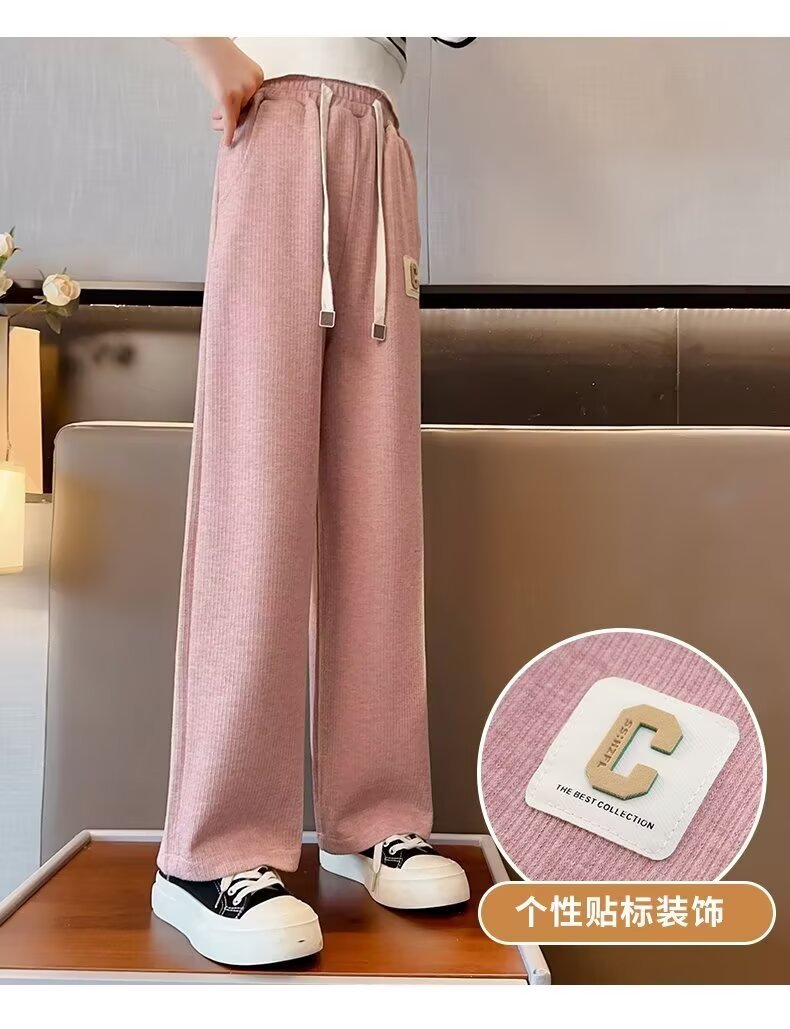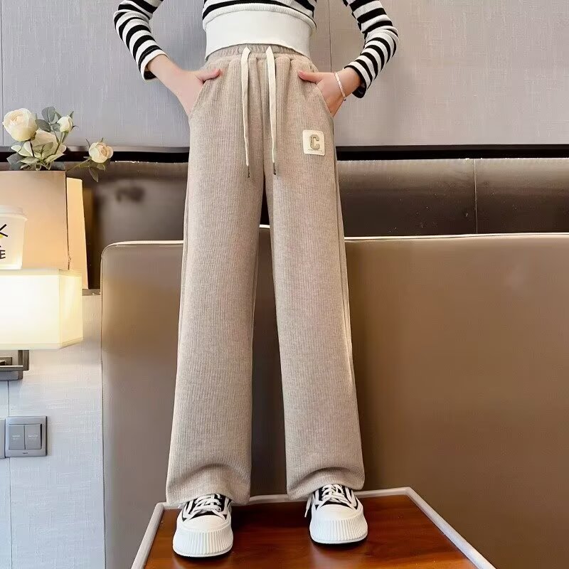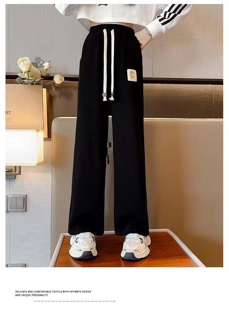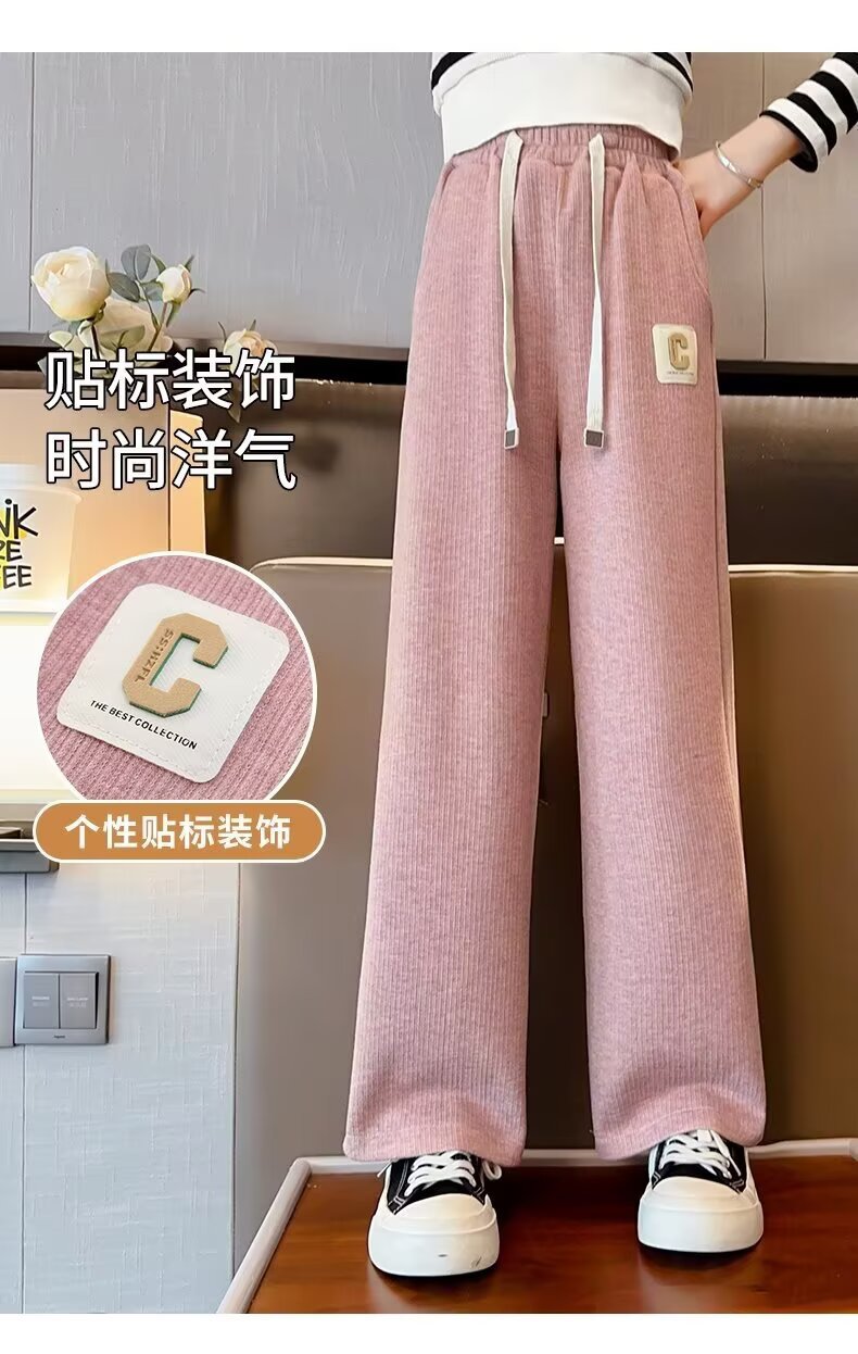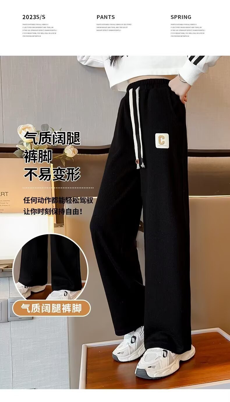 여자 캐주얼 바지 2025 봄과 가을 새로운 스타일 중대형 어린이 드로우 매일 올 매치 웨스턴 스타일 좁은 와이드 레그 바지스토어 가기