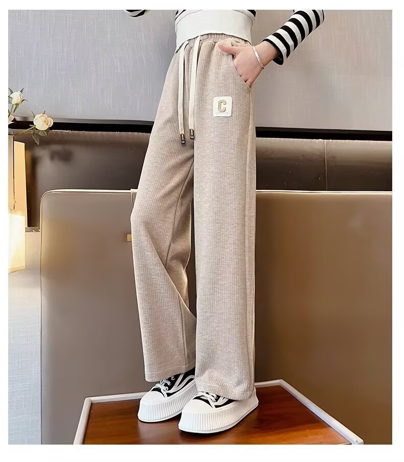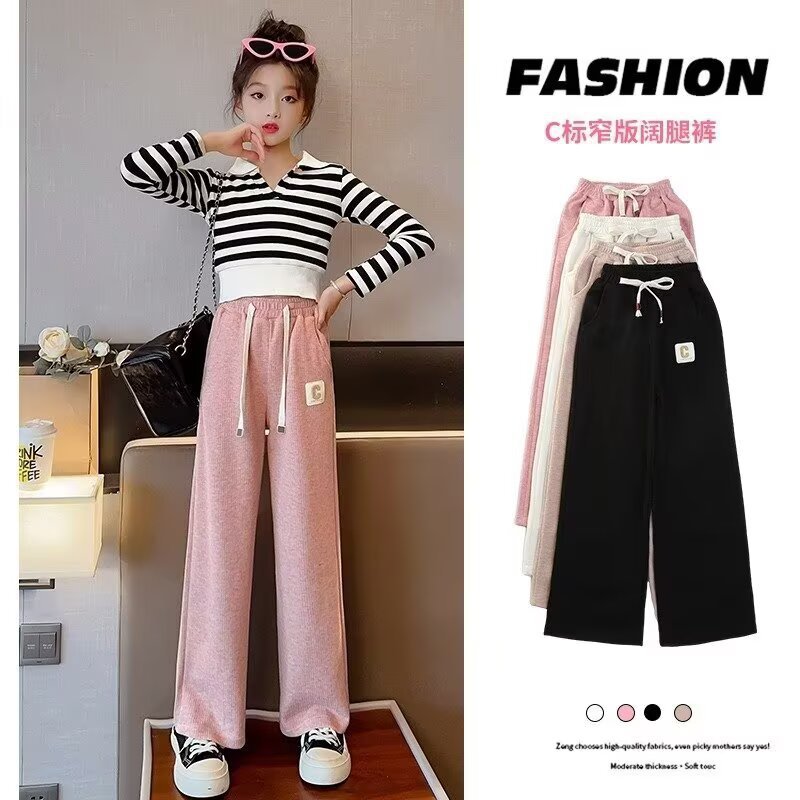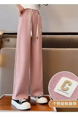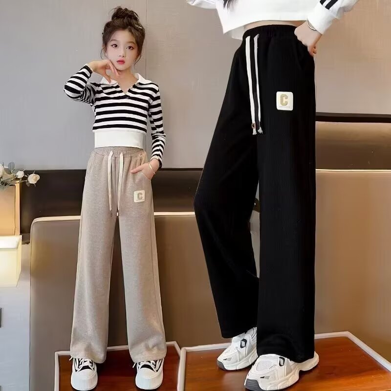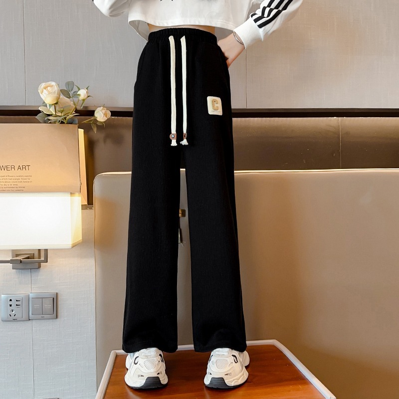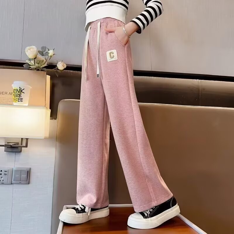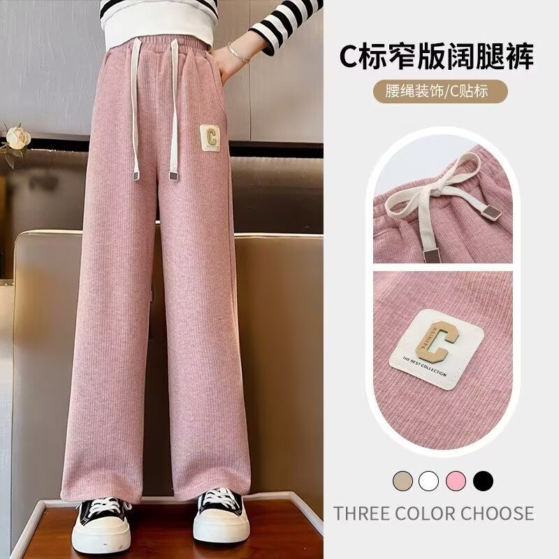 여자 캐주얼 바지 2025 봄과 가을 새로운 스타일 중대형 어린이 드로우 매일 올 매치 웨스턴 스타일 좁은 와이드 레그 바지스토어 가기