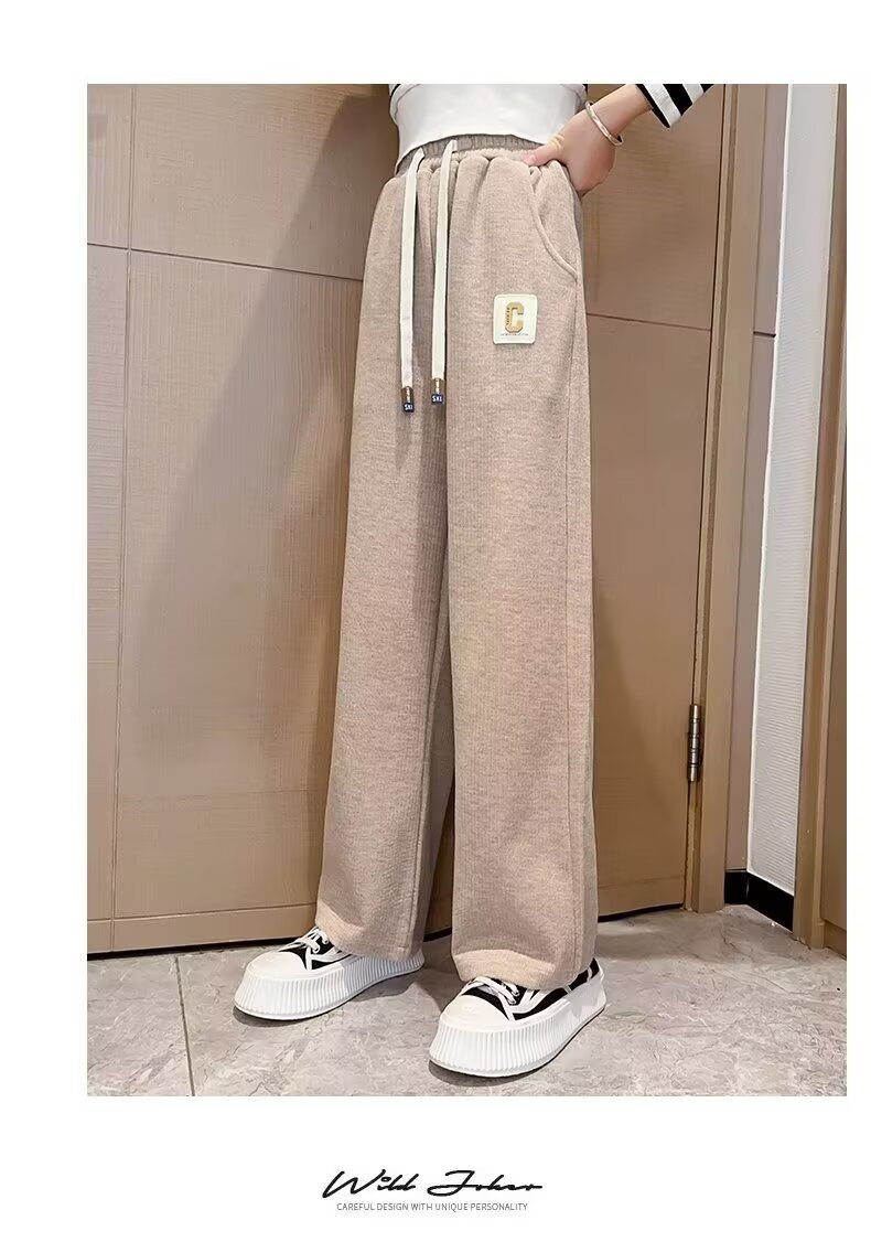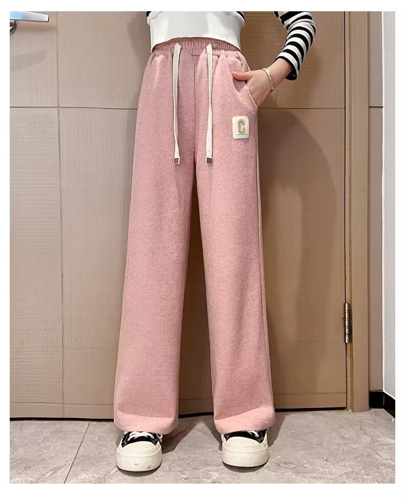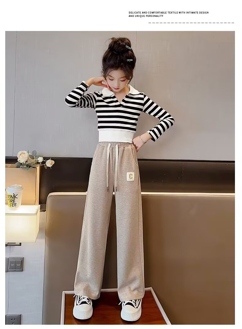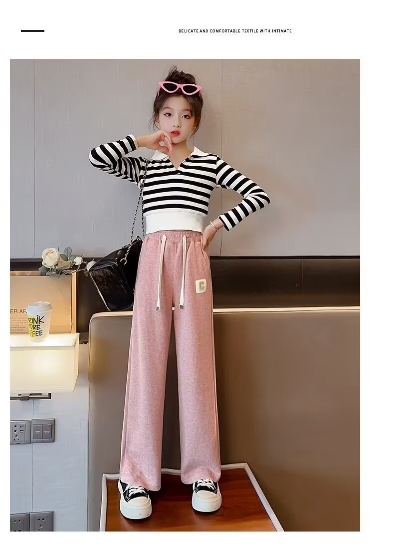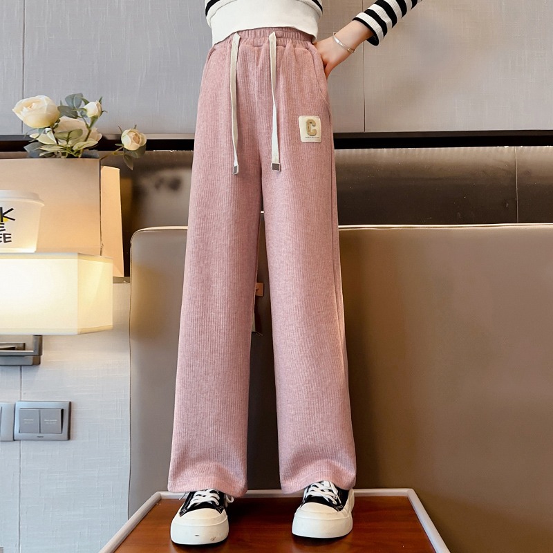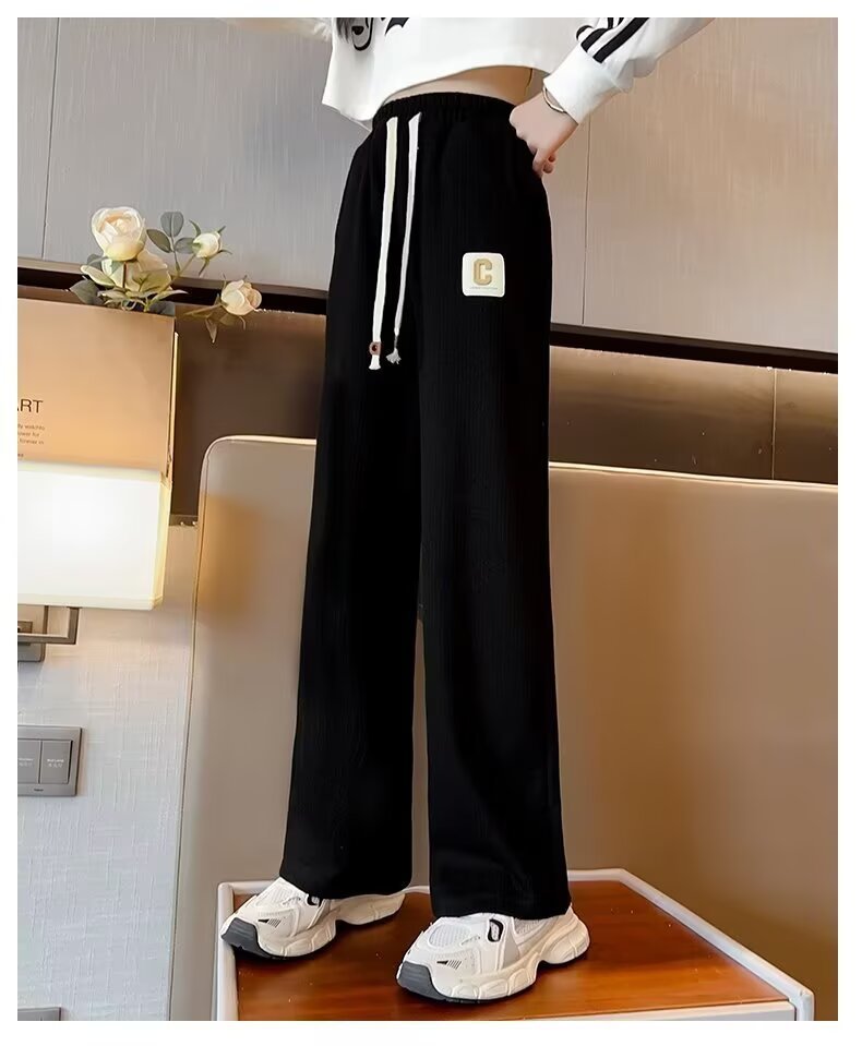 여자 캐주얼 바지 2025 봄과 가을 새로운 스타일 중대형 어린이 드로우 매일 올 매치 웨스턴 스타일 좁은 와이드 레그 바지스토어 가기