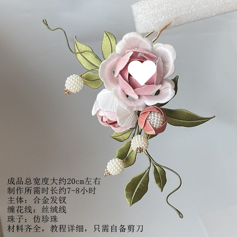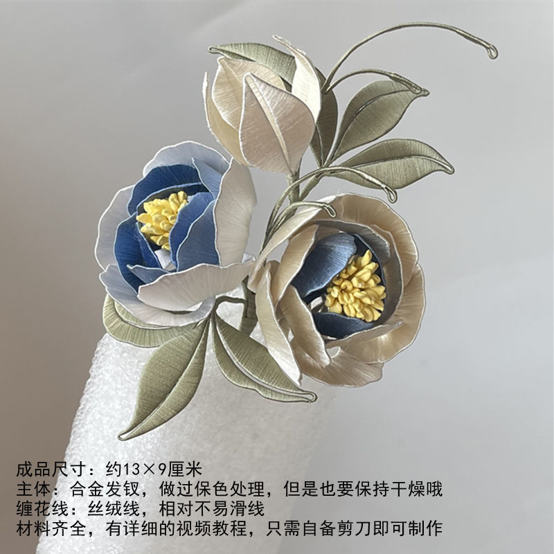 상세한 비디오 자습서 무형 유산 작품으로 꽃을 감싸는 헤어핀 꽃 소재 골동품 머리 한후 액세서리 헤어핀스토어 가기