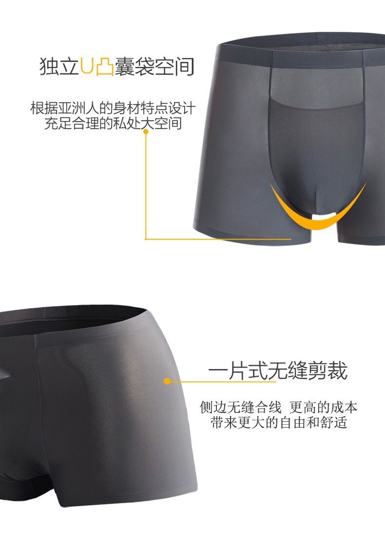 여름 아이스 실크 속옷 남성과 남성의 원활한 원피스 울트라 얇은 반바지 통기성 복서 반바지 폭발 제조 업체 플러스 사이즈스토어 가기