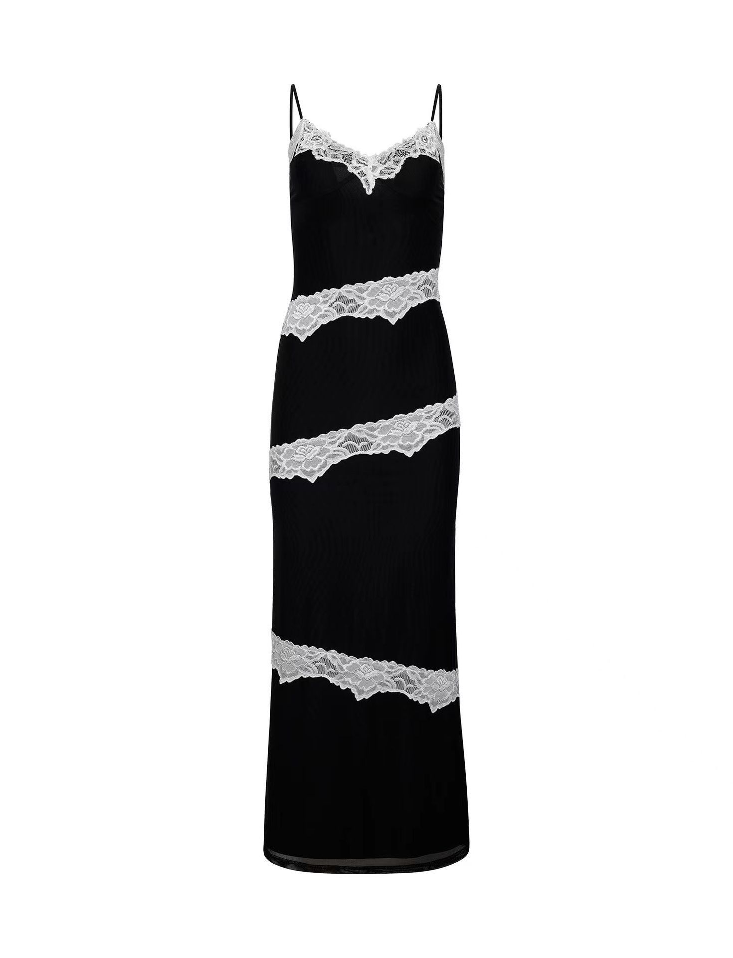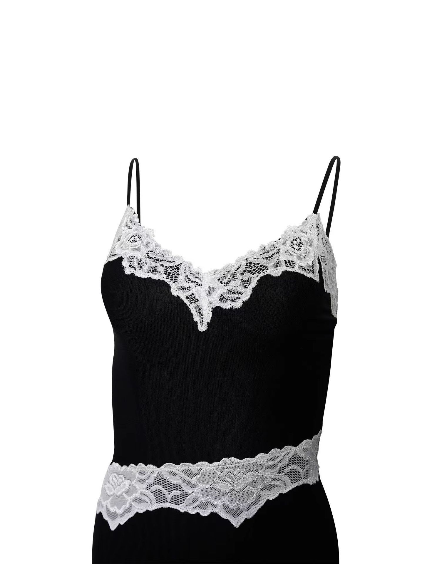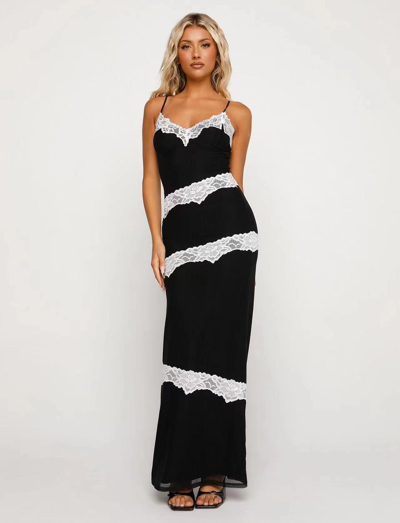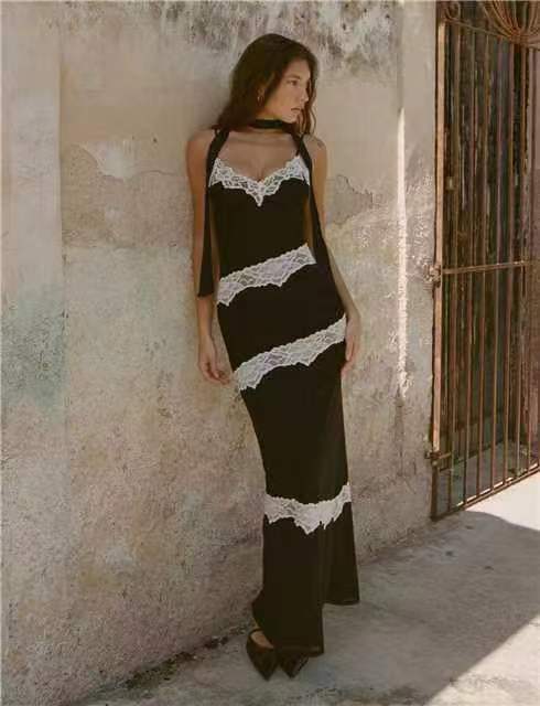 독립 스테이션 2023 여름 새로운 여성 의류 순수 스파이스 걸스 백리스 레이스 스티칭 대조 슬링 원피스