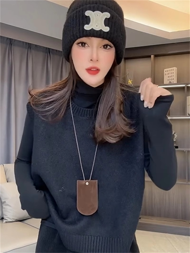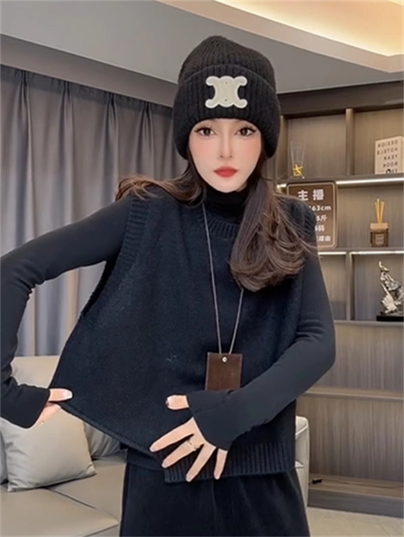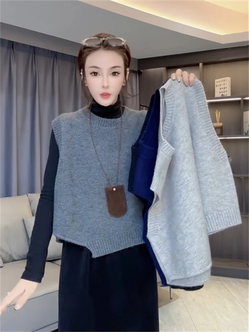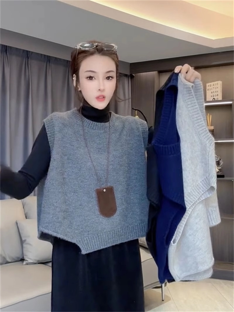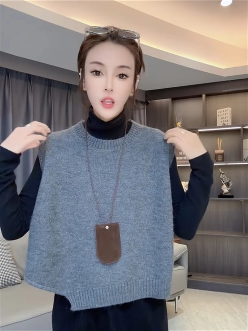 유럽 용품 디자인 불규칙한 짧은 니트 스웨터 조끼 여성의 가을과 겨울 새로운 유행 느슨한 올 매치 외부 스웨터스토어 가기