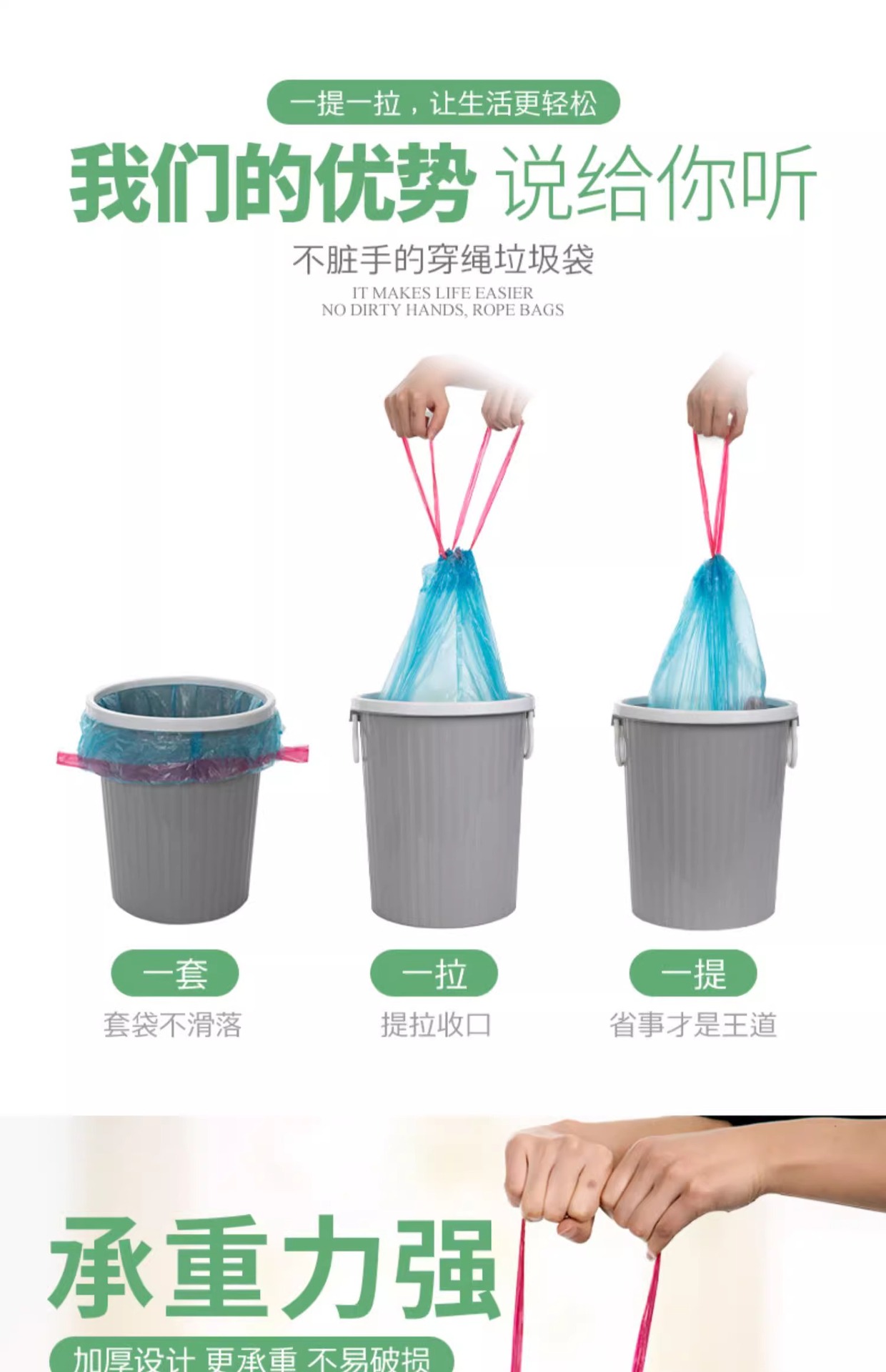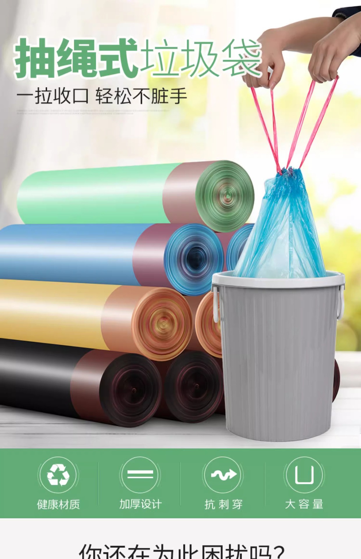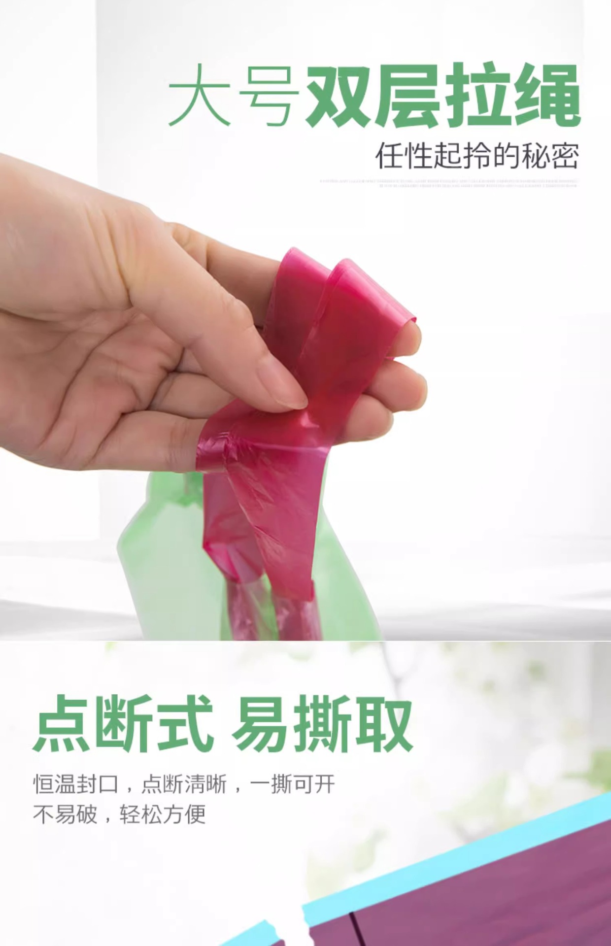 서랍 쓰레기 봉투 가정용 휴대용 주방 자동 코일 업 일회용 청소 가방 당겨 큰 크기