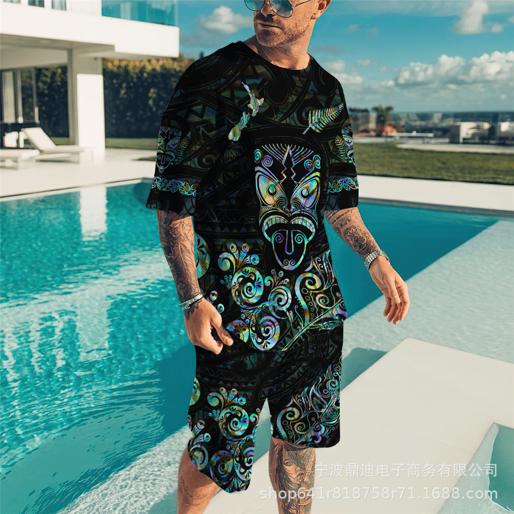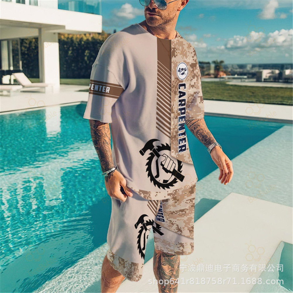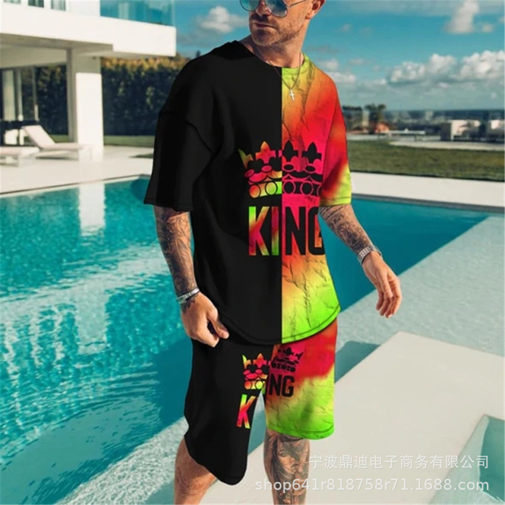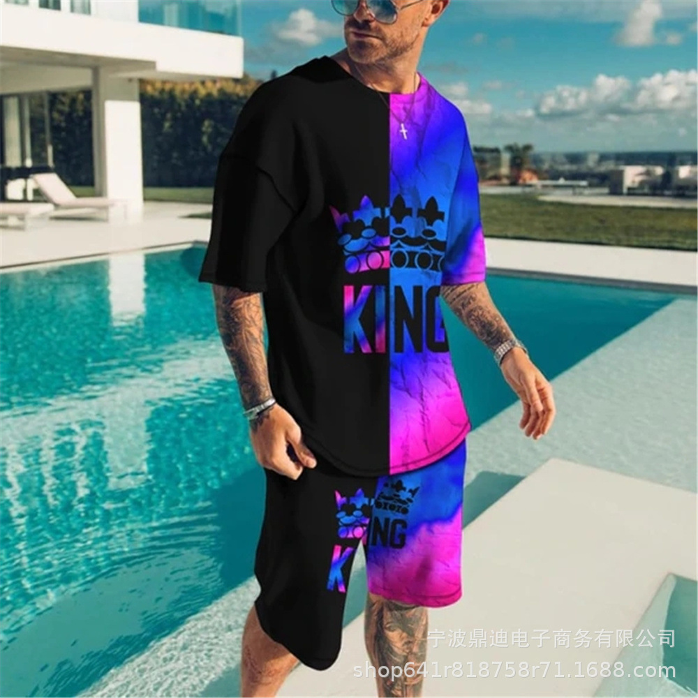[반소매 반바지] 2025 년 여름 남자 3Dt 셔츠 반팔 패션 레저 스포츠 세트 크루 넥 투피스 세트스토어 가기