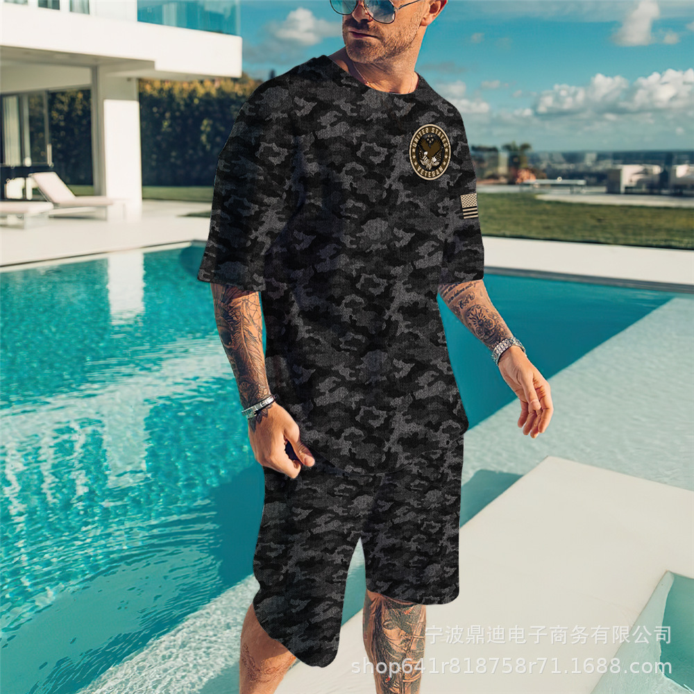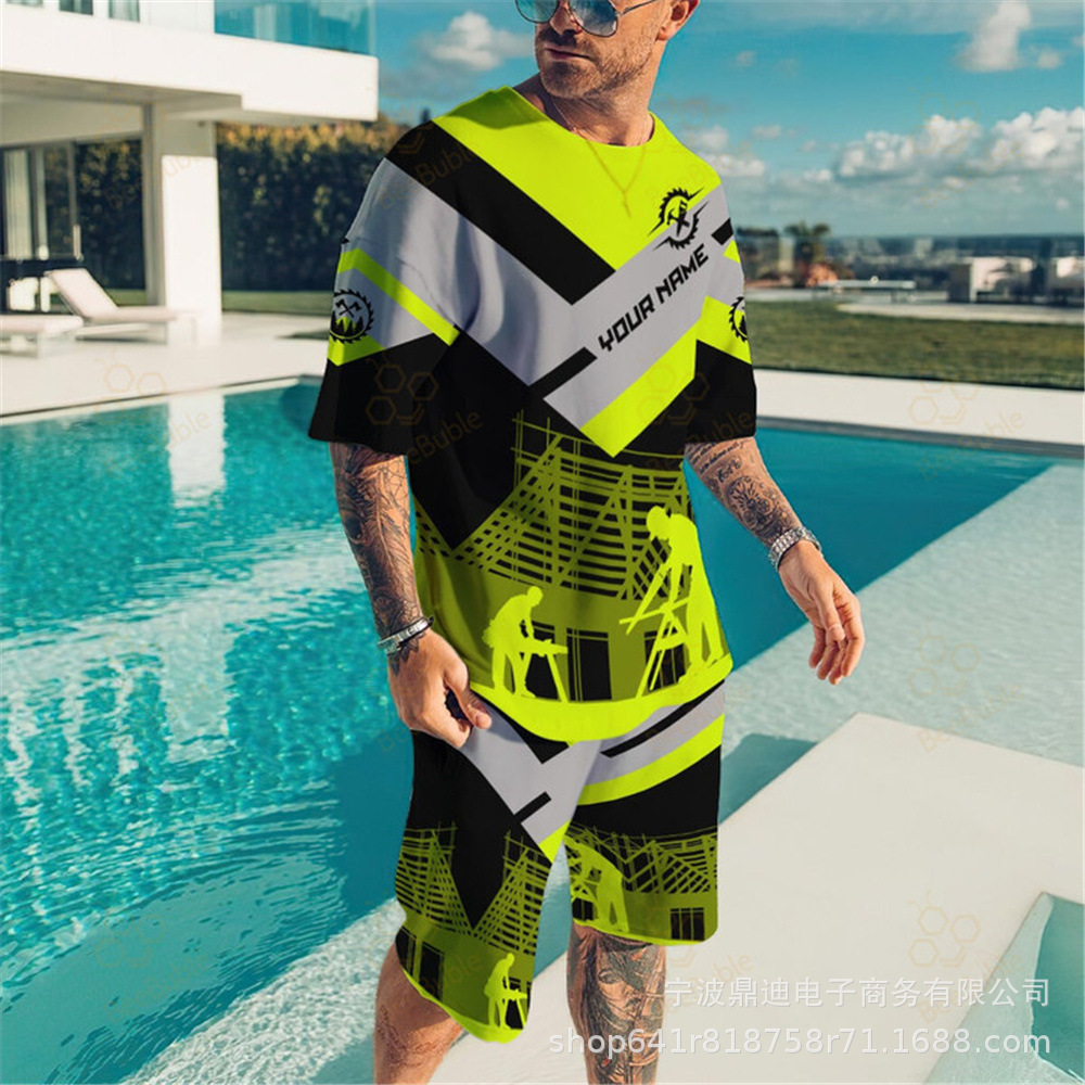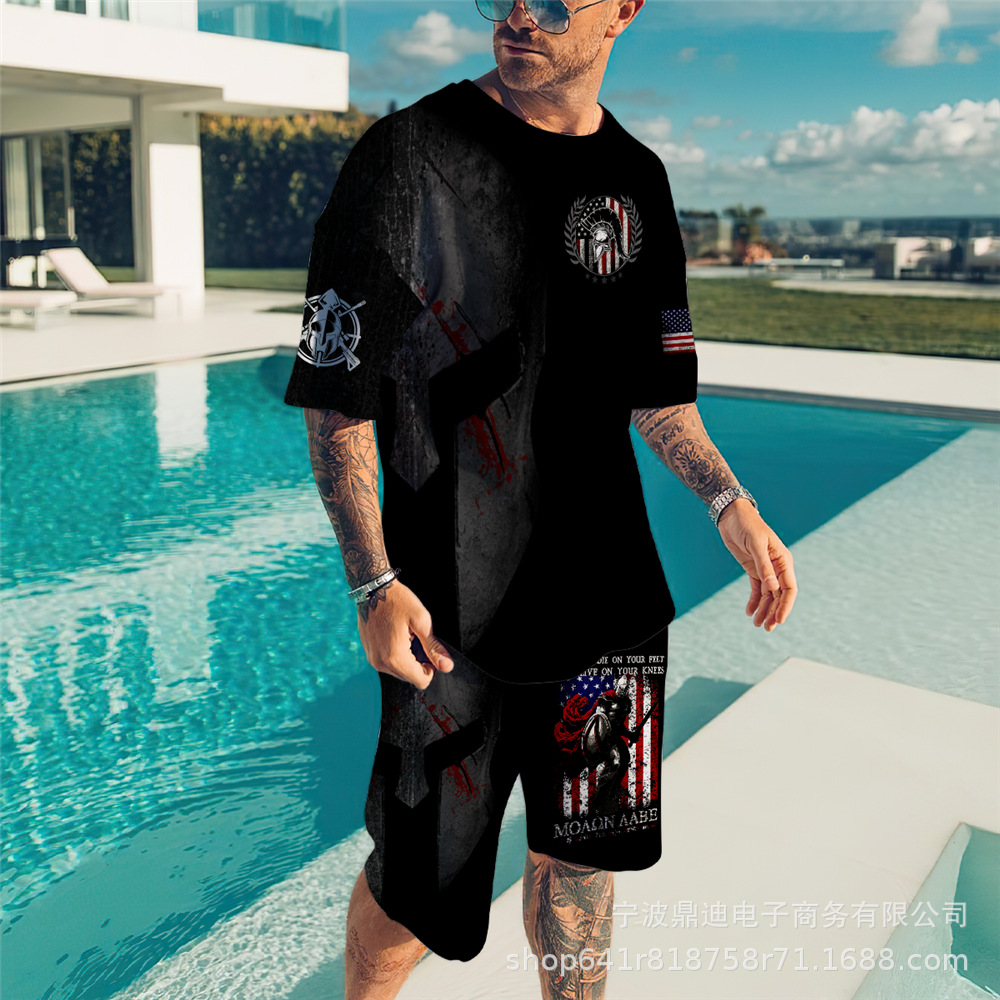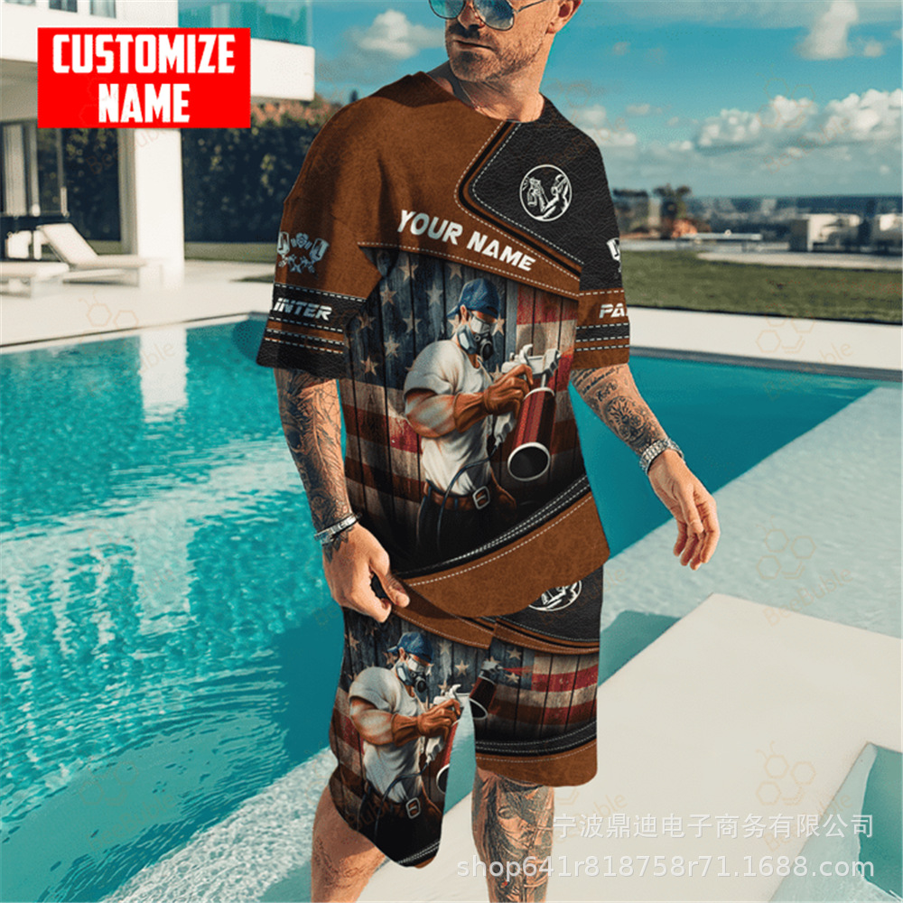 [반소매 반바지] 2025 년 여름 남자 3Dt 셔츠 반팔 패션 레저 스포츠 세트 크루 넥 투피스 세트