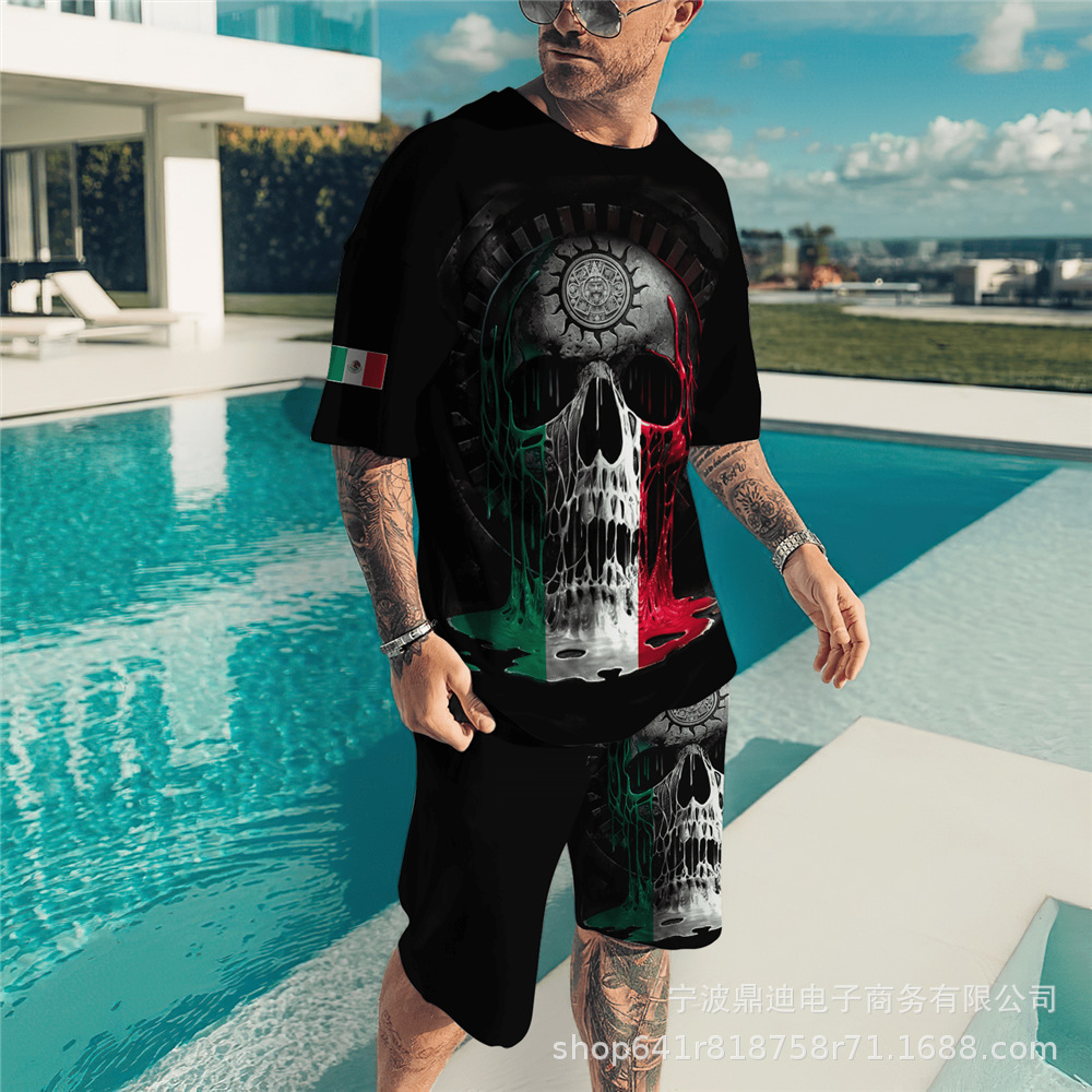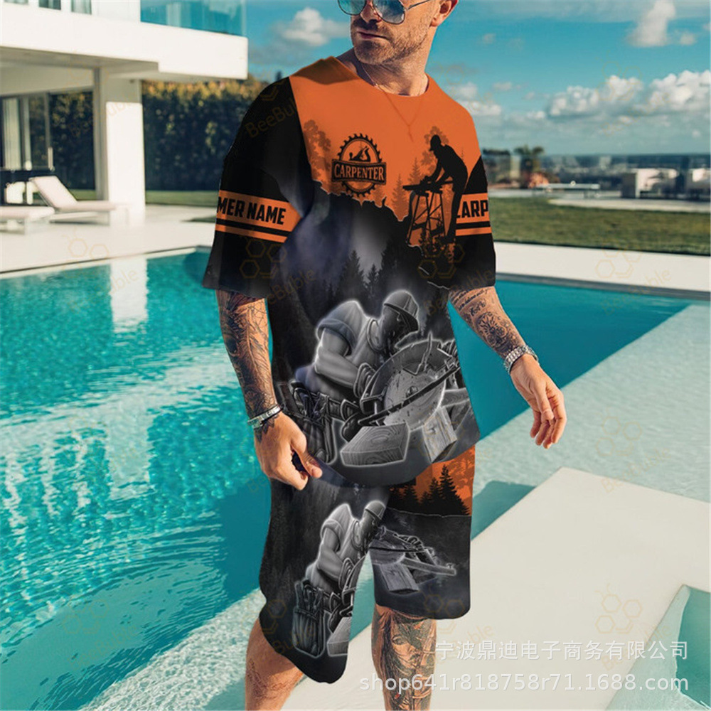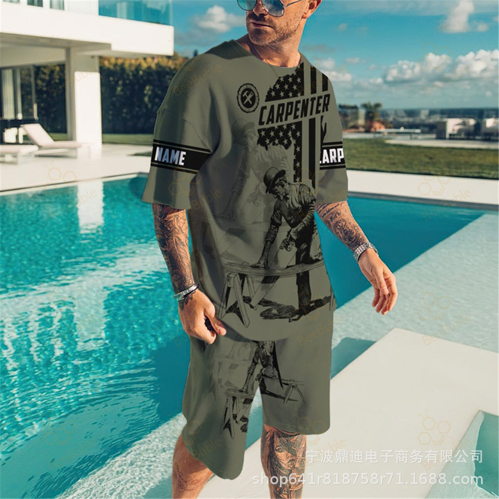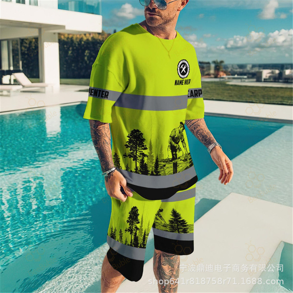 [반소매 반바지] 2025 년 여름 남자 3Dt 셔츠 반팔 패션 레저 스포츠 세트 크루 넥 투피스 세트
