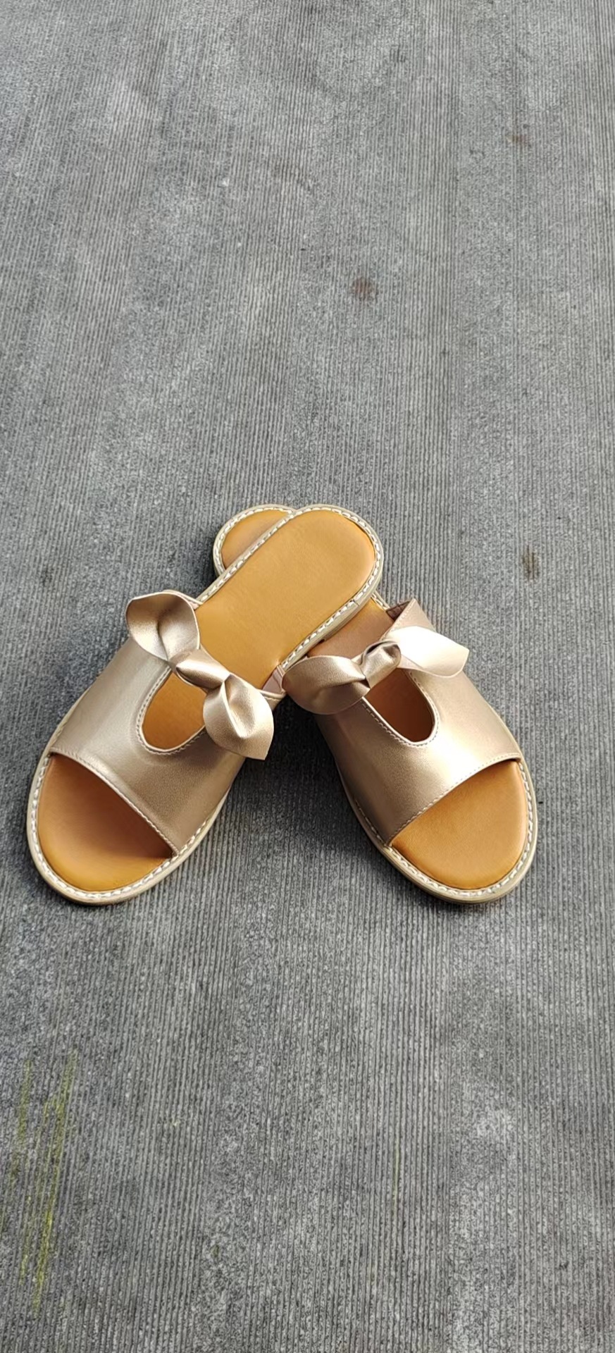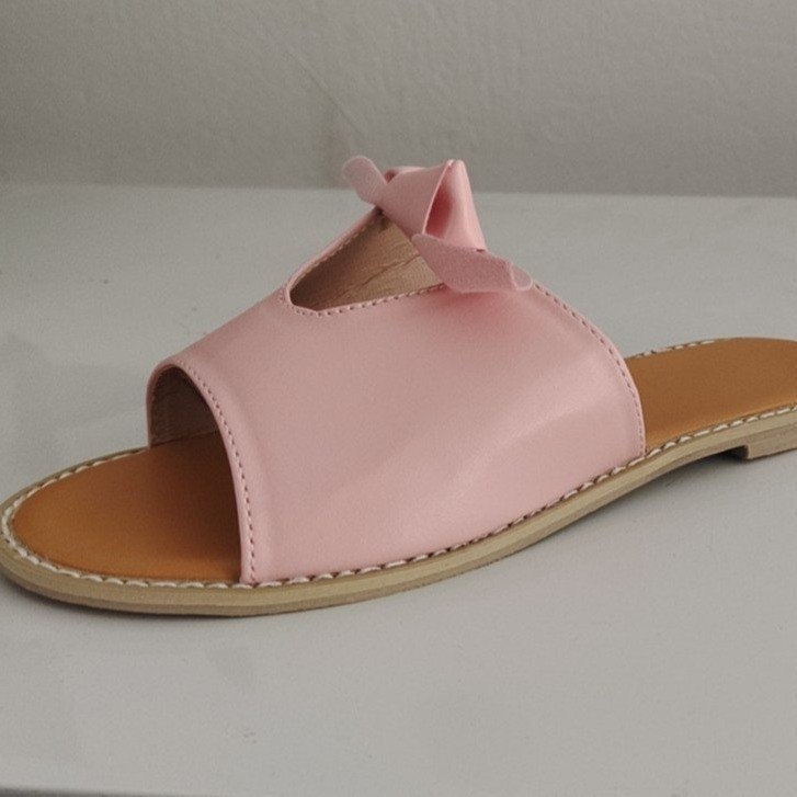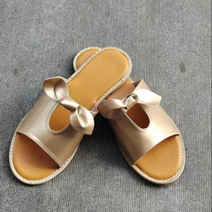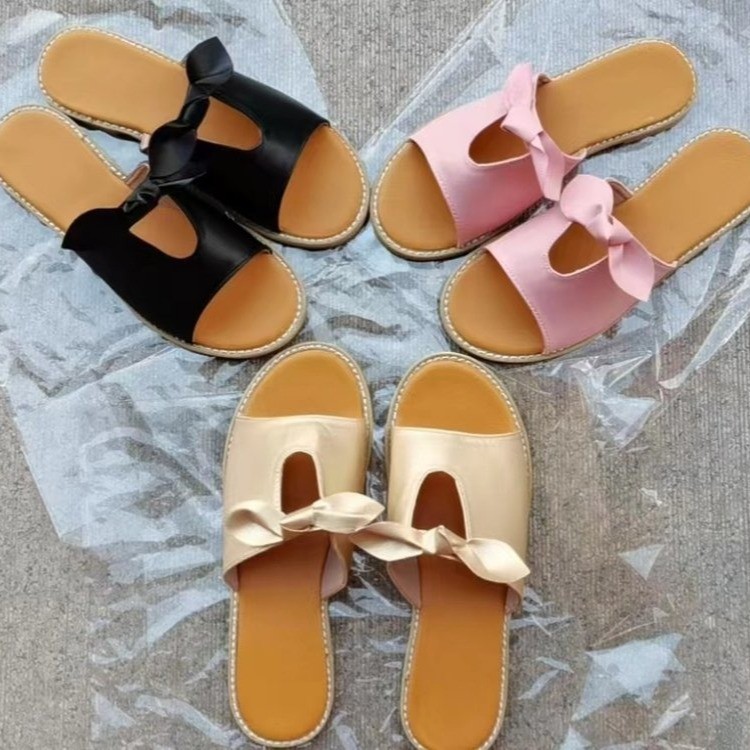 2025년 신상 여름 리본 단색 속이 비치는 오픈토 패션 플랫 슬리퍼 (유럽 및 미국 사이즈)