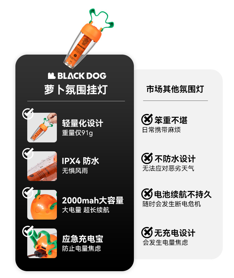 검은 개 야외 무 램프 높은 색상 가치 야외 긴 내구성 캠핑 램프 조명 분위기 텐트 램프스토어 가기