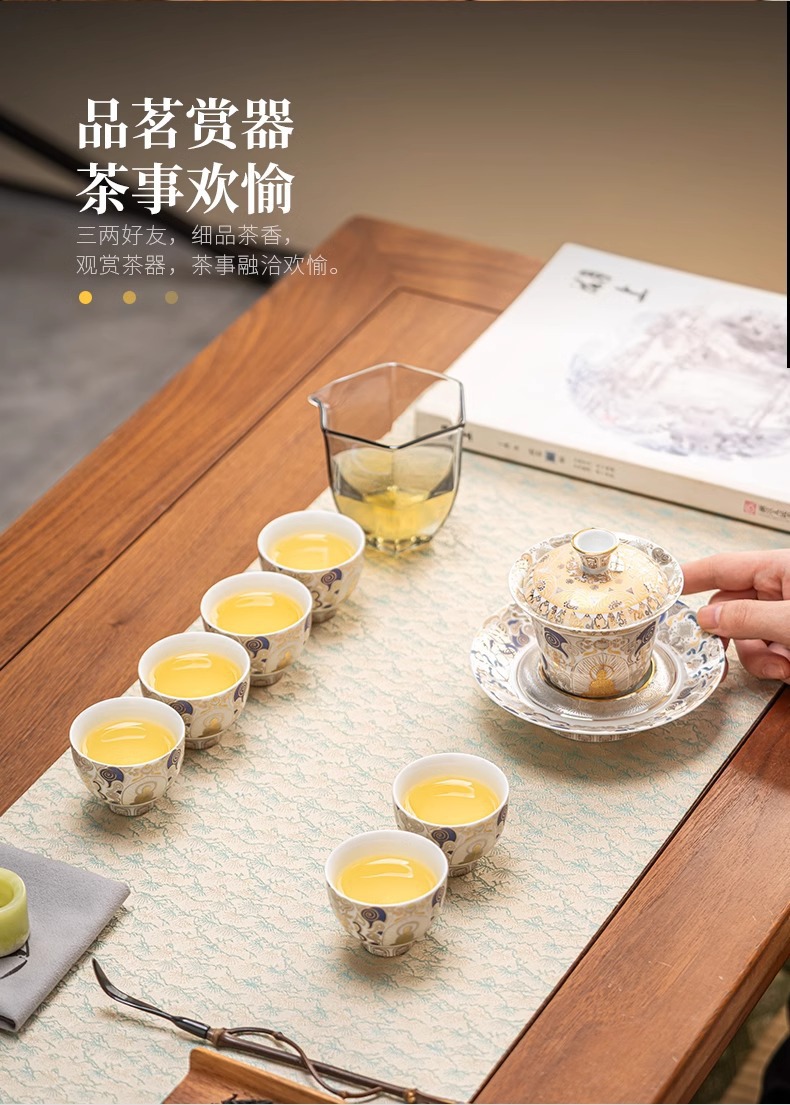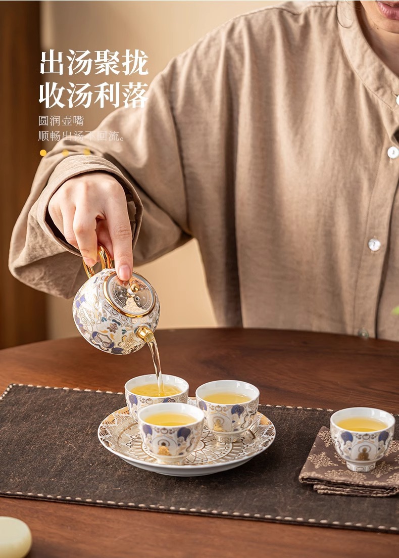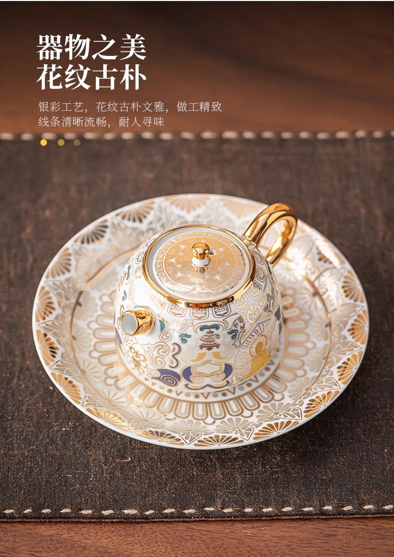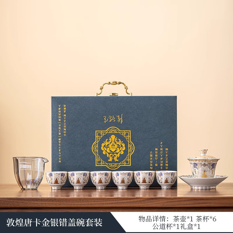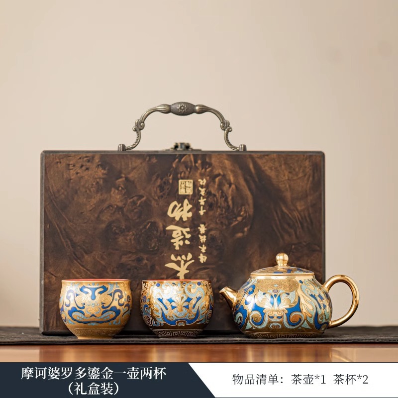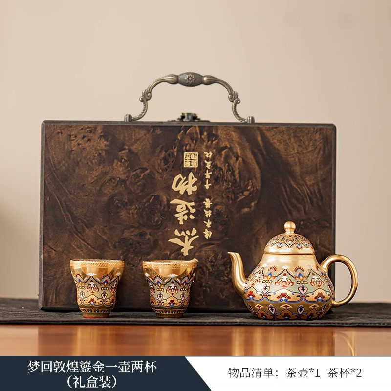 陈德生敦煌鎏金功夫茶具套装一壶二杯茶壶茶杯高档乔迁生日伴手礼