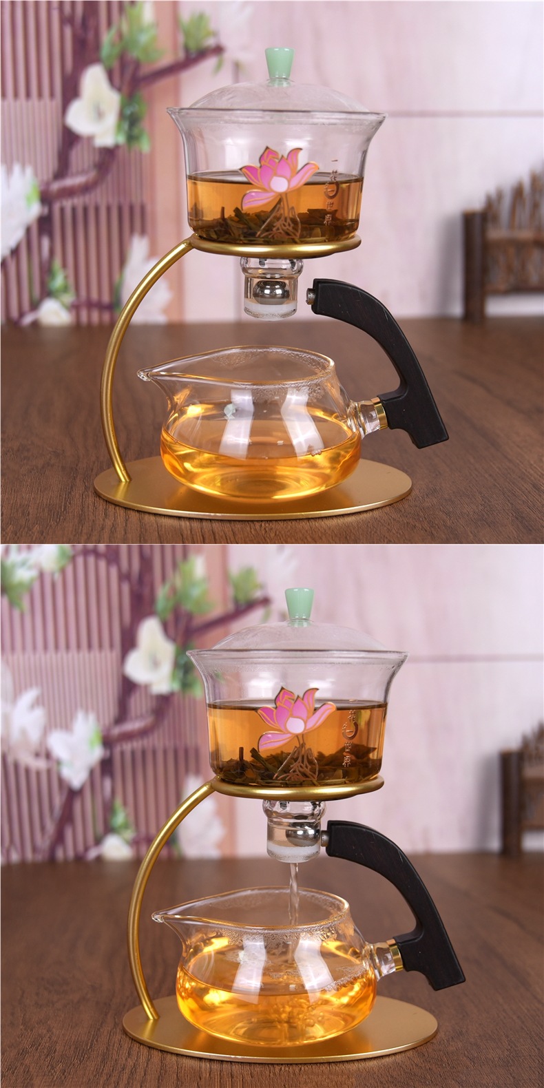 • 골드 프레임 꽃잎 차 메이커 세트