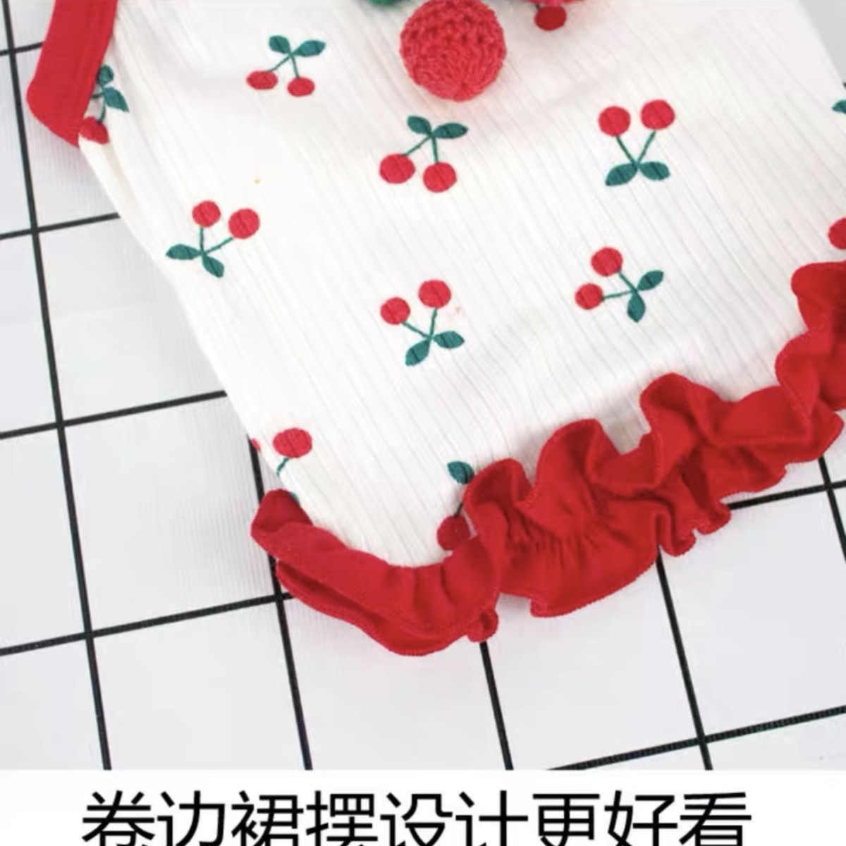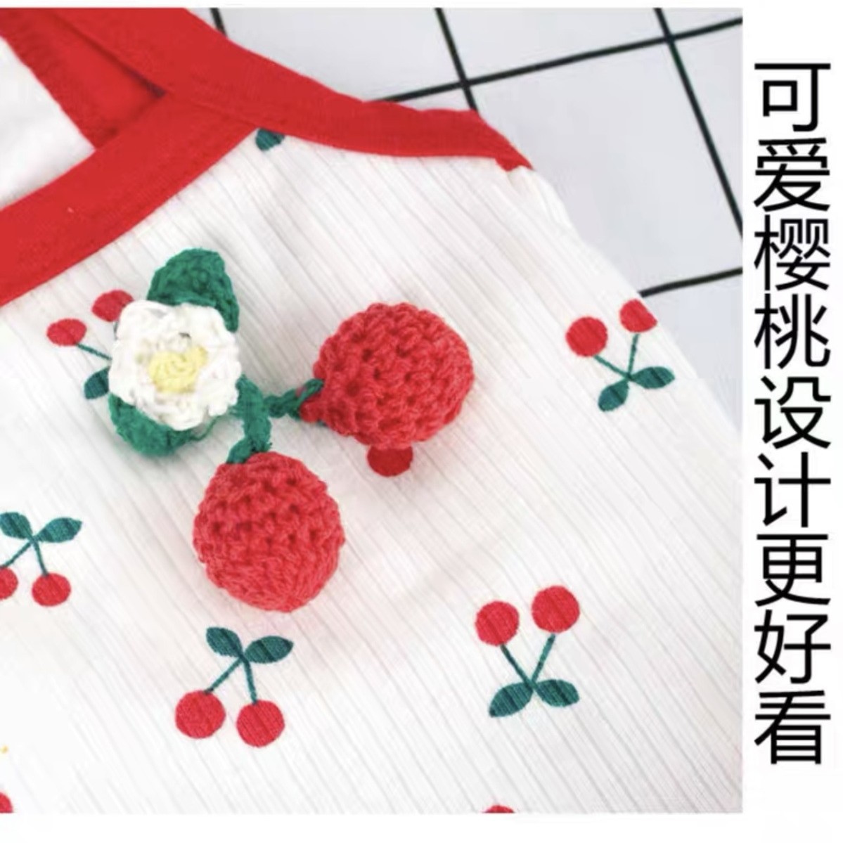 여름 애완견 강아지 슬링 체리 귀여운 테디 포메라니안 몰타 요크셔 고양이 옷 스커트스토어 가기