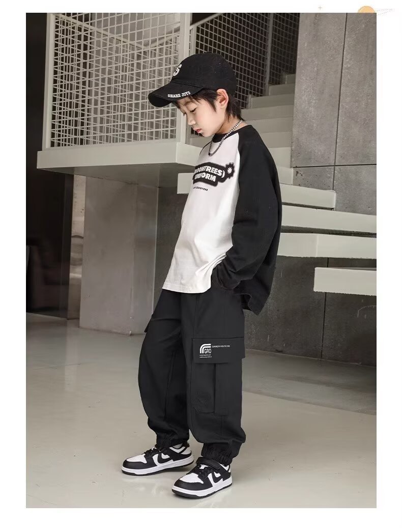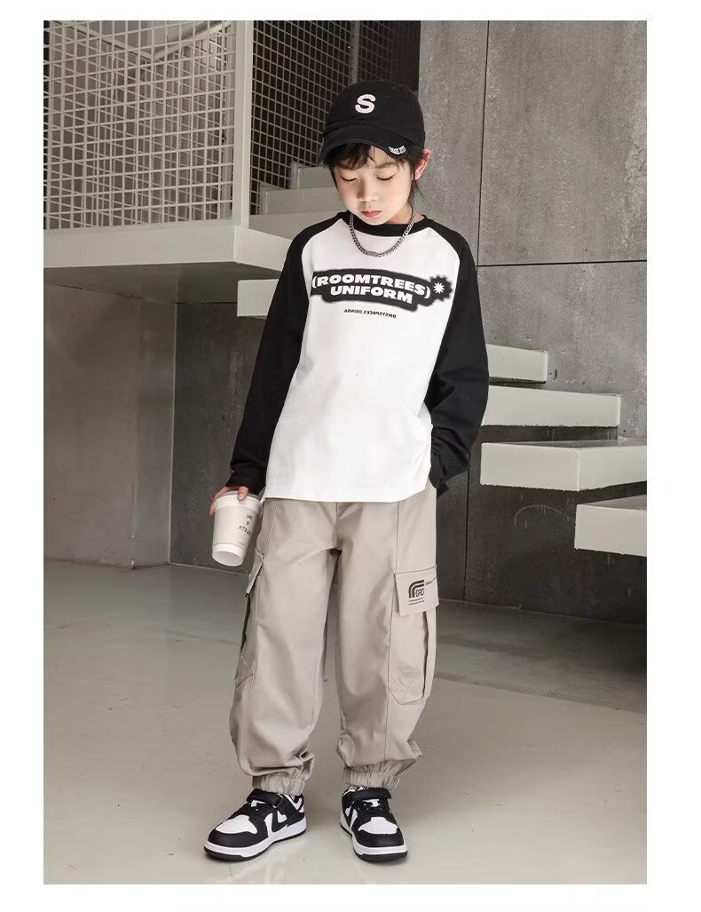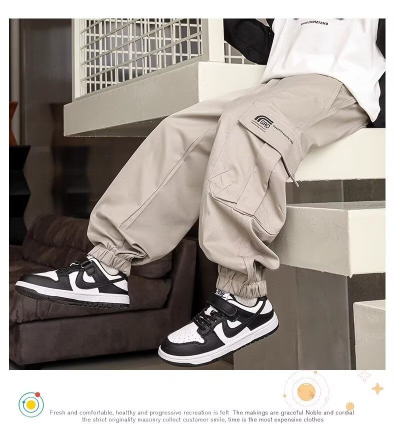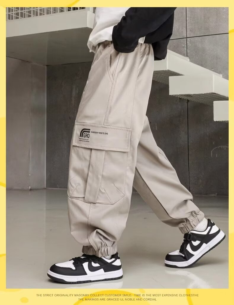 소년 스포츠 바지 봄과 가을 운동복 소년 스트레이트 배럴 와이드 레그 작업복 바지 봄 큰 어린이 캐주얼 바지스토어 가기